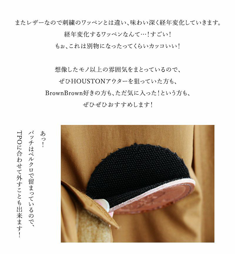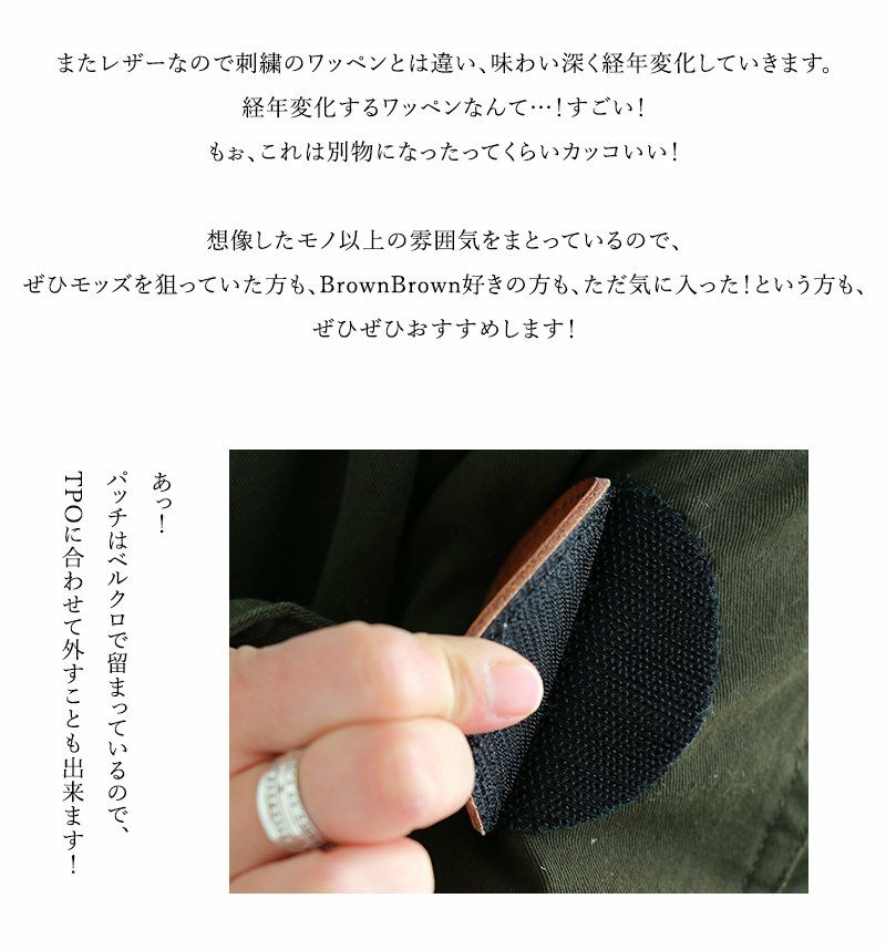 他の画像を見る これ1枚で、ヴィンテージなアウター6着分!? (ブラウンブラウン×レボ) BrownBrown×REVO. モッズコート M-51 限定 レザーパッチ BrownBrown×REVO. 販売価格 ¥ 19,580 税込 在庫切れ 詳細を見る お気に入りに登録する