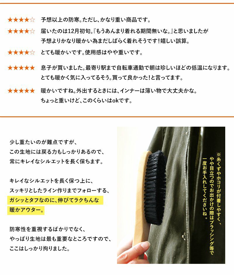 他の画像を見る 耳まで暖かくて着膨れない。【ヴィンテージ風】スリムストレッチコート。 (ブラウンブラウン×アリステア) BrownBrown×ALISTAIR モッズコート ストレッチ 【限定レザーパッチ】 販売価格 ¥ 14,300 税込 在庫切れ カートに入れる お気に入りに登録する