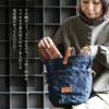 風合いのあるっかりとした厚手のデニム地。伸縮性・透け感はありません。レザー部分は肉厚感のある硬めの触り心地。経年変化を楽しめるバッグになっています。