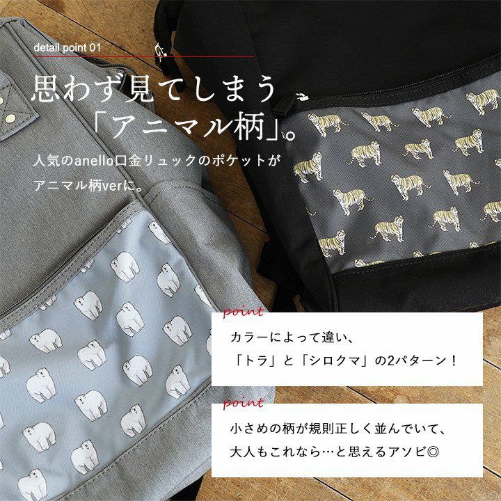 他の画像を見る 中身が見やすく、物を入れやすく、取り出しやすい。 anello GRANDE アネロ リュック ポケット アニマル柄 虎 寅 トラ くま クマ シロクマ 大きく開く 口金 がま口 入れやすい 出しやすい 撥水 anelloリュック 肩 楽 軽い クッションパッド 一泊二日 リュックサック 動物 アニマル ZOO パティ 2~3日でお届け 販売価格 ¥ 6,490 税込 在庫切れ カートに入れる お気に入りに登録する