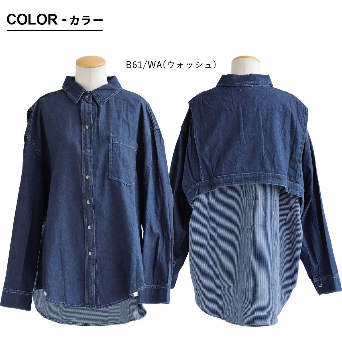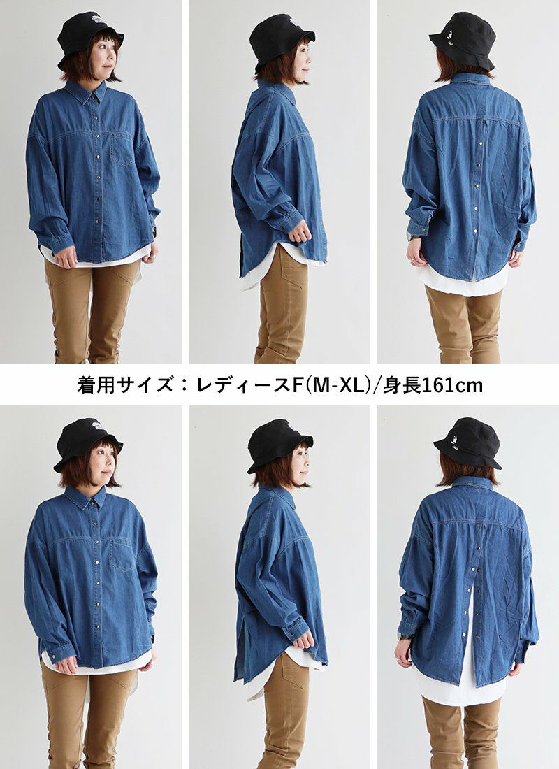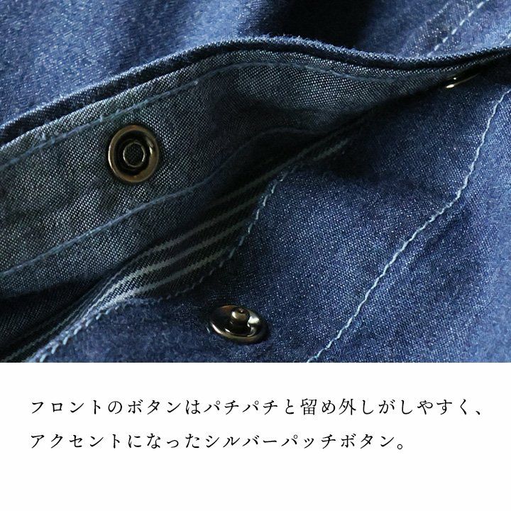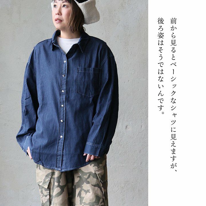 着慣れたデニムも「チラ見せ」であそぶだけ。 シャツ 長袖 デニムシャツ レディース バックボタン 重ね着 コットン ポリエステル シャンブレー 薄手 紫外線 冷房対策 羽織り 体型カバー 着痩せ すっきり カジュアル パティ GENTIL ジャンティ