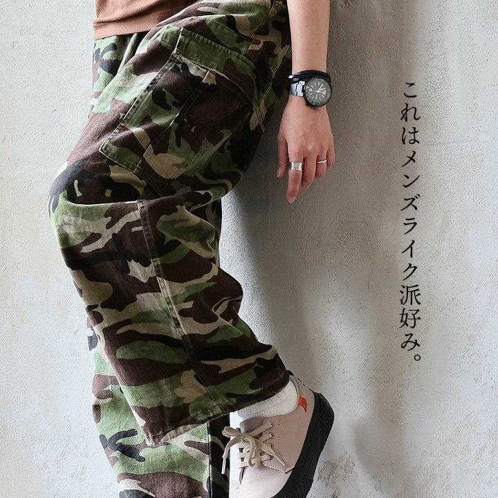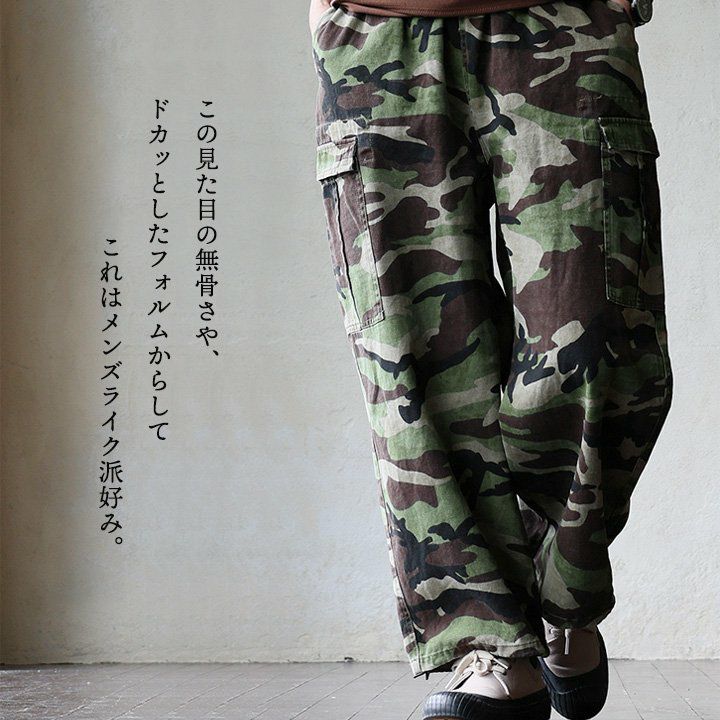 メンズライク派好みの、「ヒッコリーカーゴ」。 カーゴパンツ ワイド レディース ストライプ 細ピッチ 太ピッチ 異素材切り替え カーゴポケット コーデュロイ コットン デニム ウエストゴム ゆったり 大きいサイズ 体型カバー カジュアル メンズライク パティ GENTIL ジャンティ