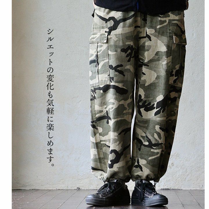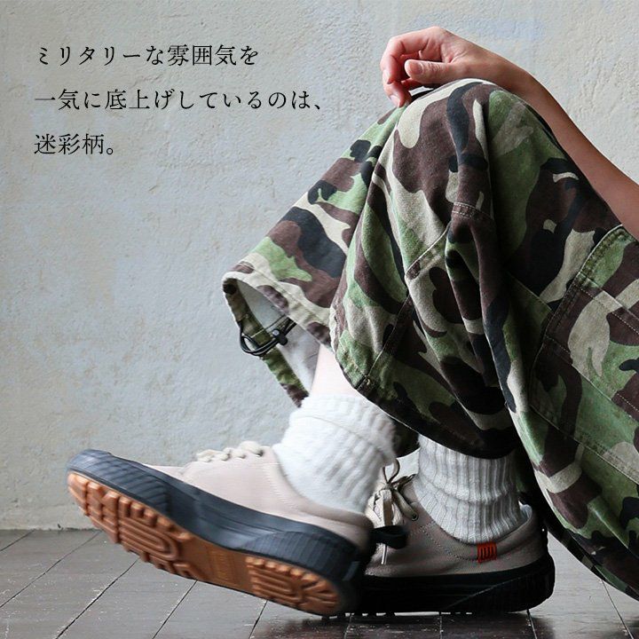 「ひとクセ」あるカモ柄を、今にハマるカタチで楽しむ。 TIGRE BROCANTE ティグルブロカンテ モッズコート ミドル丈 メンズ レディース スタンドネック アメーバカモ 総柄 ロゴ 日本製 綿100 コットン ハリ 大きいサイズ 体型カバー カジュアル ミリタリー パティ