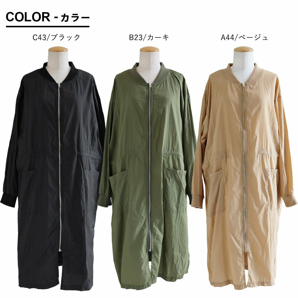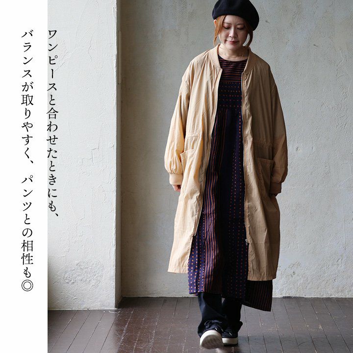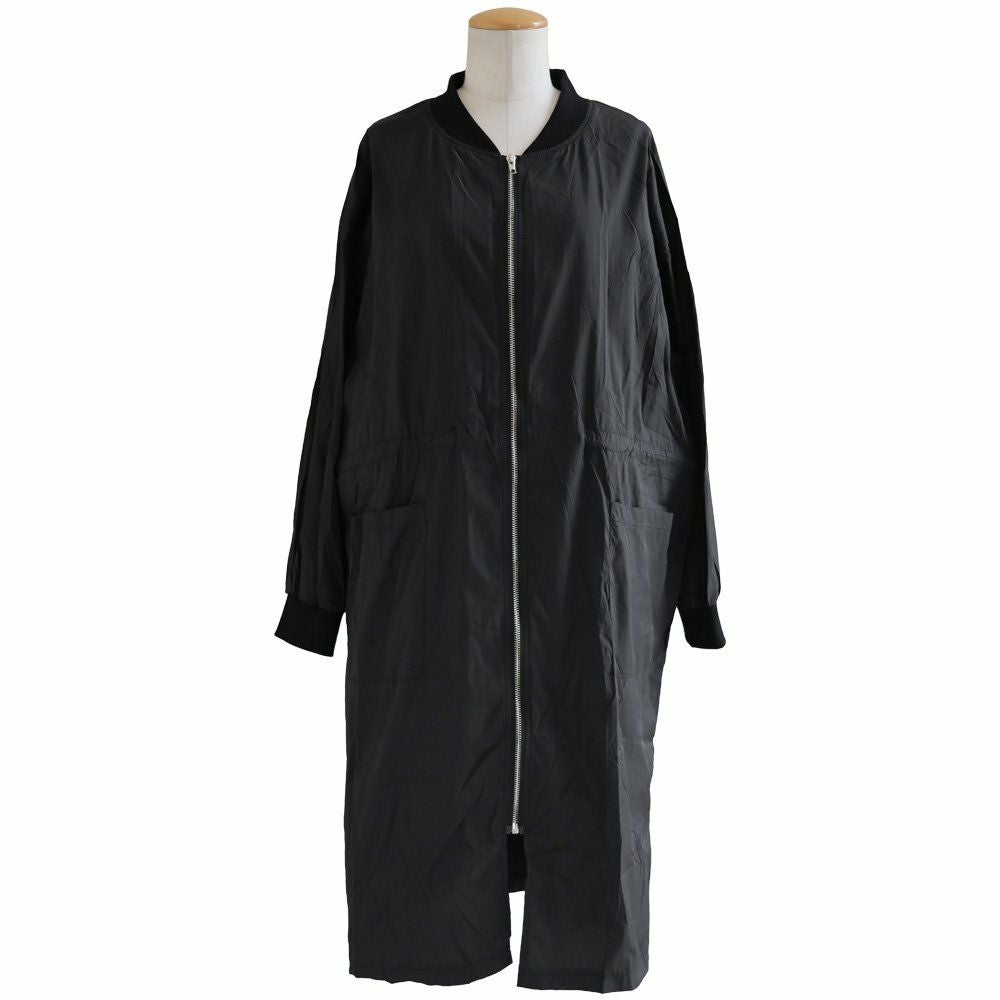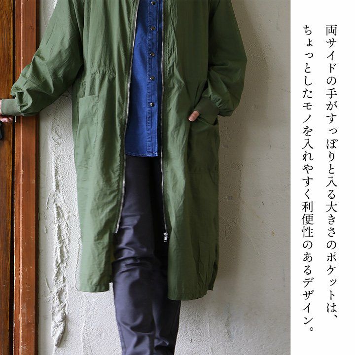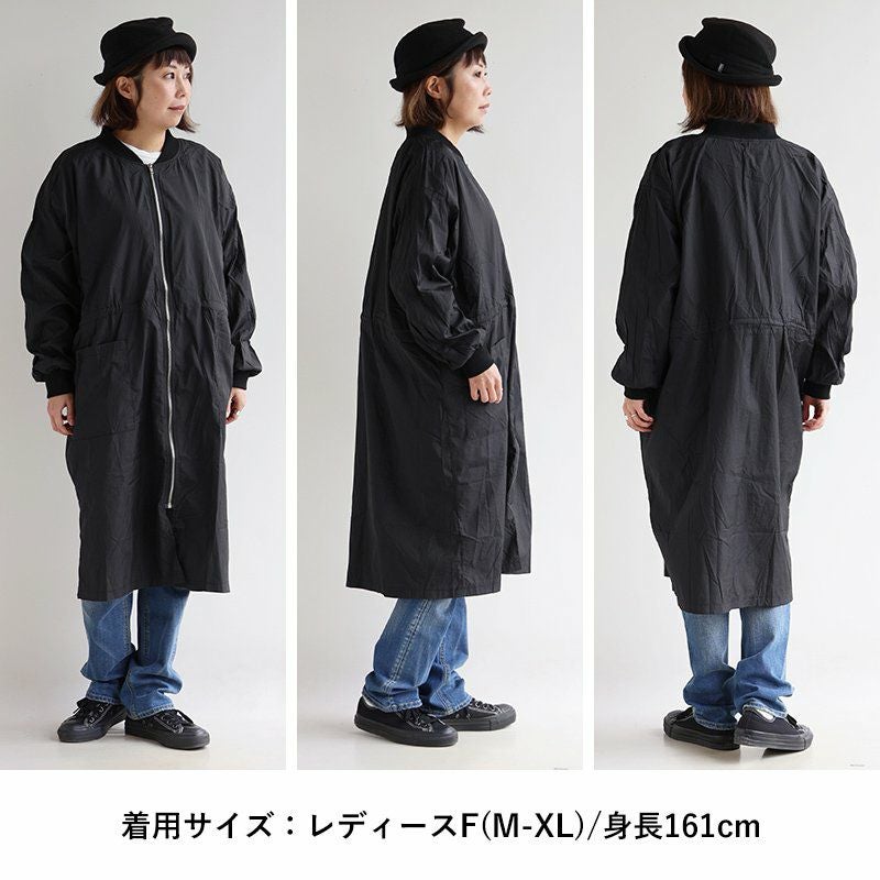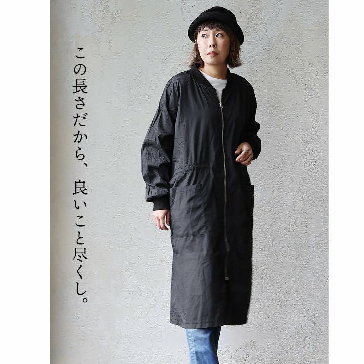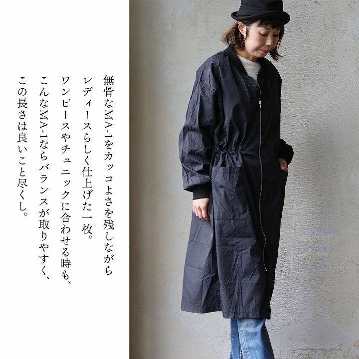 この長さだから、良いこと尽くし。 MA- 1ロング丈 レディース 無地 ナイロン 薄手 軽い 袖リブ ポケット ウエスト ロックコード 大きいサイズ 体型カバー ゆったり すっきり カジュアル メンズライク 秋 パティ GENTIL ジャンティ
