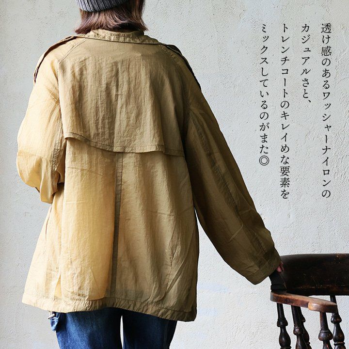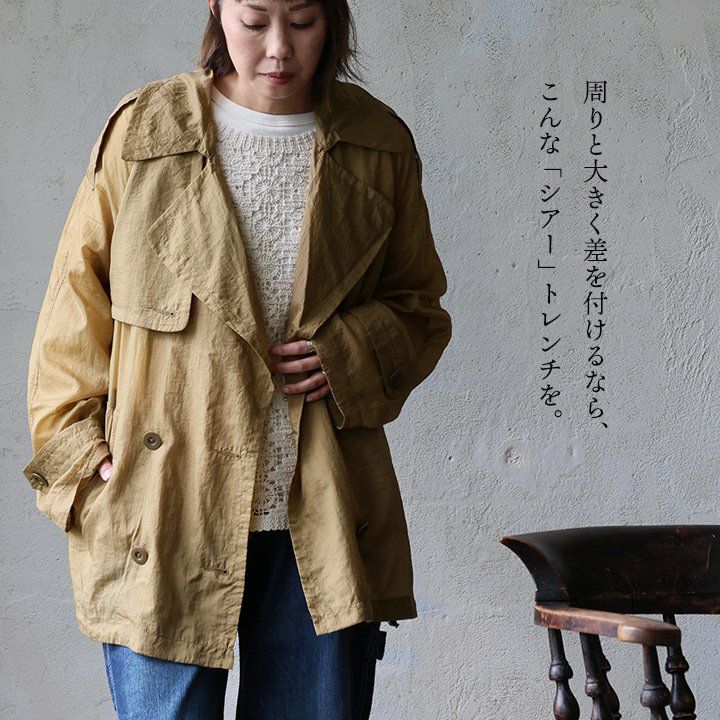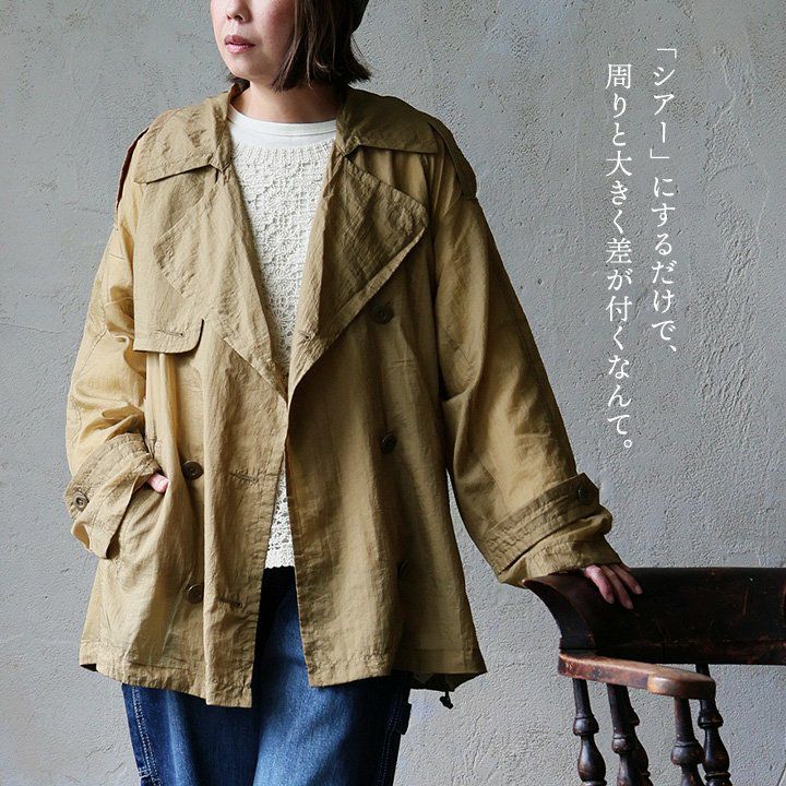 「シアー」にするだけで、周りと大きく差が付くなんて。 Antgauge アントゲージ トレンチコート ショート丈 レディース シアー ナイロン 薄手 軽い 重ね着 透け感 大きいサイズ カジュアル 秋 パティ