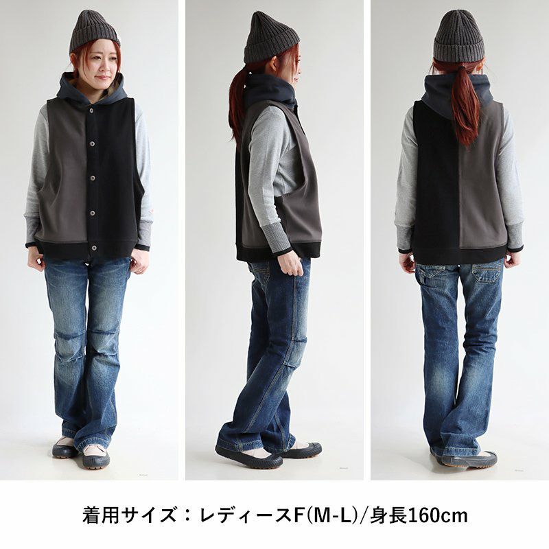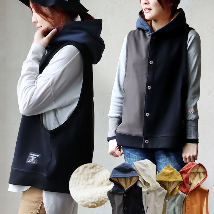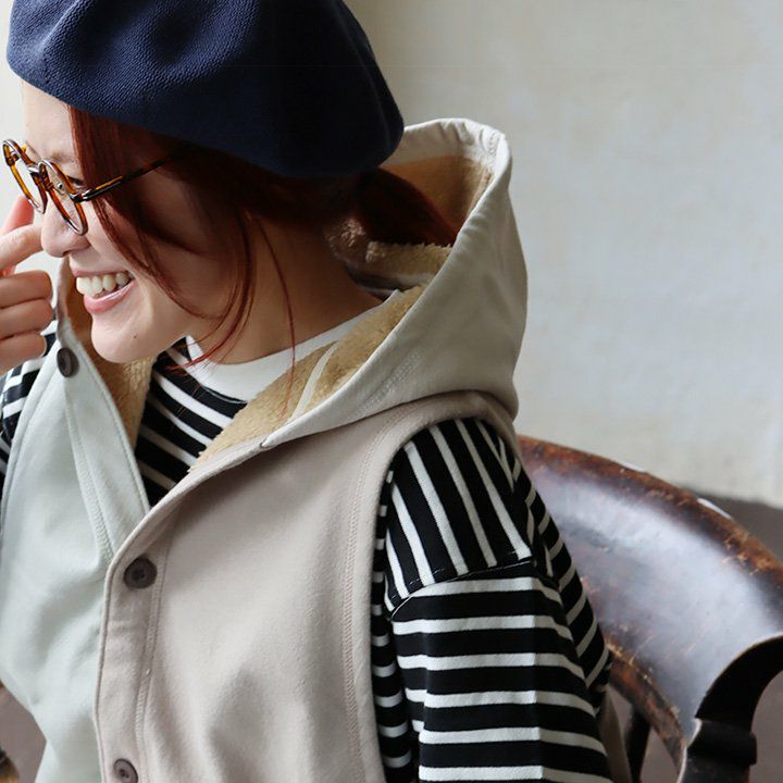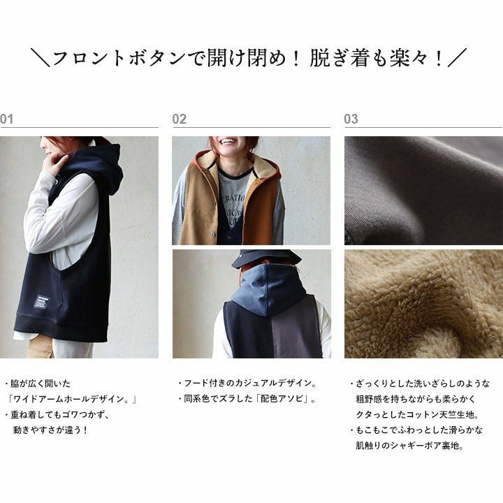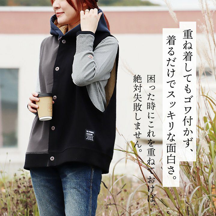 裏ボアでも、この「脇の開き」で、着痩せ効果がすごいっ!! 着痩せ ベスト 暖かい 裏ボア レディース ロング丈 前開き すっきり 着痩せ お尻 隠れ カバー パーカー 裏地 ボア フリース アウター おしゃれ 大きめ 重ね着 裾リブ 大人 カジュアル パティ GENTIL ジャンティ