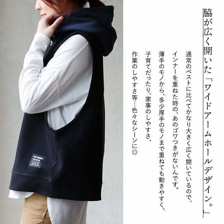 着るだけで、重ね着上手になれて、着痩せまでっ!? 着痩せ パーカー ベスト スウェット ワイド ロング丈 重ね着 プルオーバー 秋 レディース トップス ドルマン 裏毛 コットン 綿100% シルエットチェンジ ポケット カジュアル レイヤード お尻 体型カバー おしゃれ パティ GENTIL ジャンティ