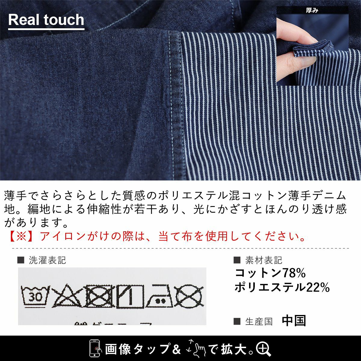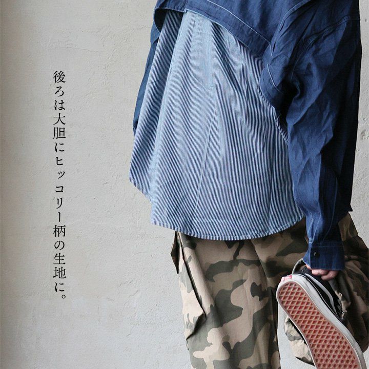 定番なのに自信が湧く「個性派」。 デニムシャツ ヒッコリー 長袖 レディース 薄手 軽い ゆったり お尻 体型 カバー 大きいサイズ レギュラーカラー コットン ポリエステル デニム 切替 クレイジー 胸ポケット カジュアル ヴィンテージ アメカジ パティ GENTIL ジャンティ