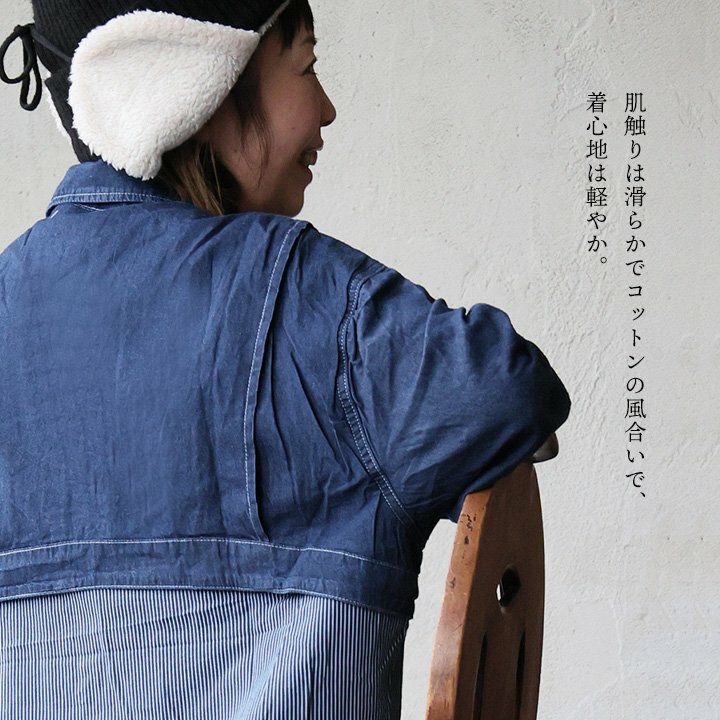 良い意味で「らしくない」のが良い。 Antgauge アントゲージ Gジャン ジャケット 長袖 レディース ノーカラー 綿100 コットン ノンストレッチ インディゴ 軽い すっきり 体型カバー カジュアル パティ