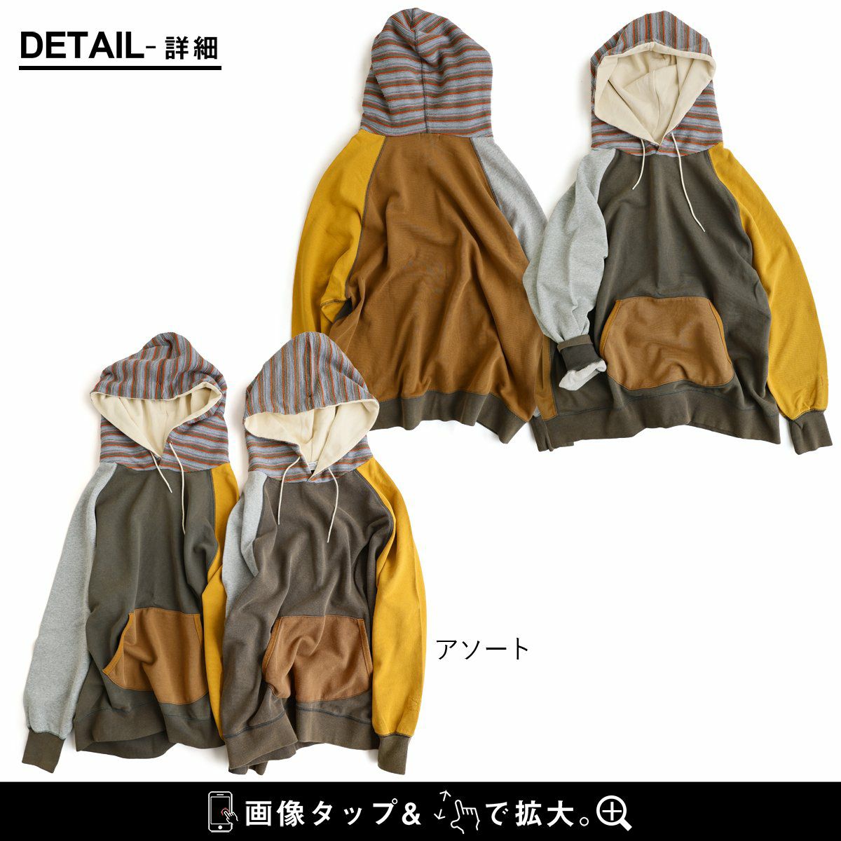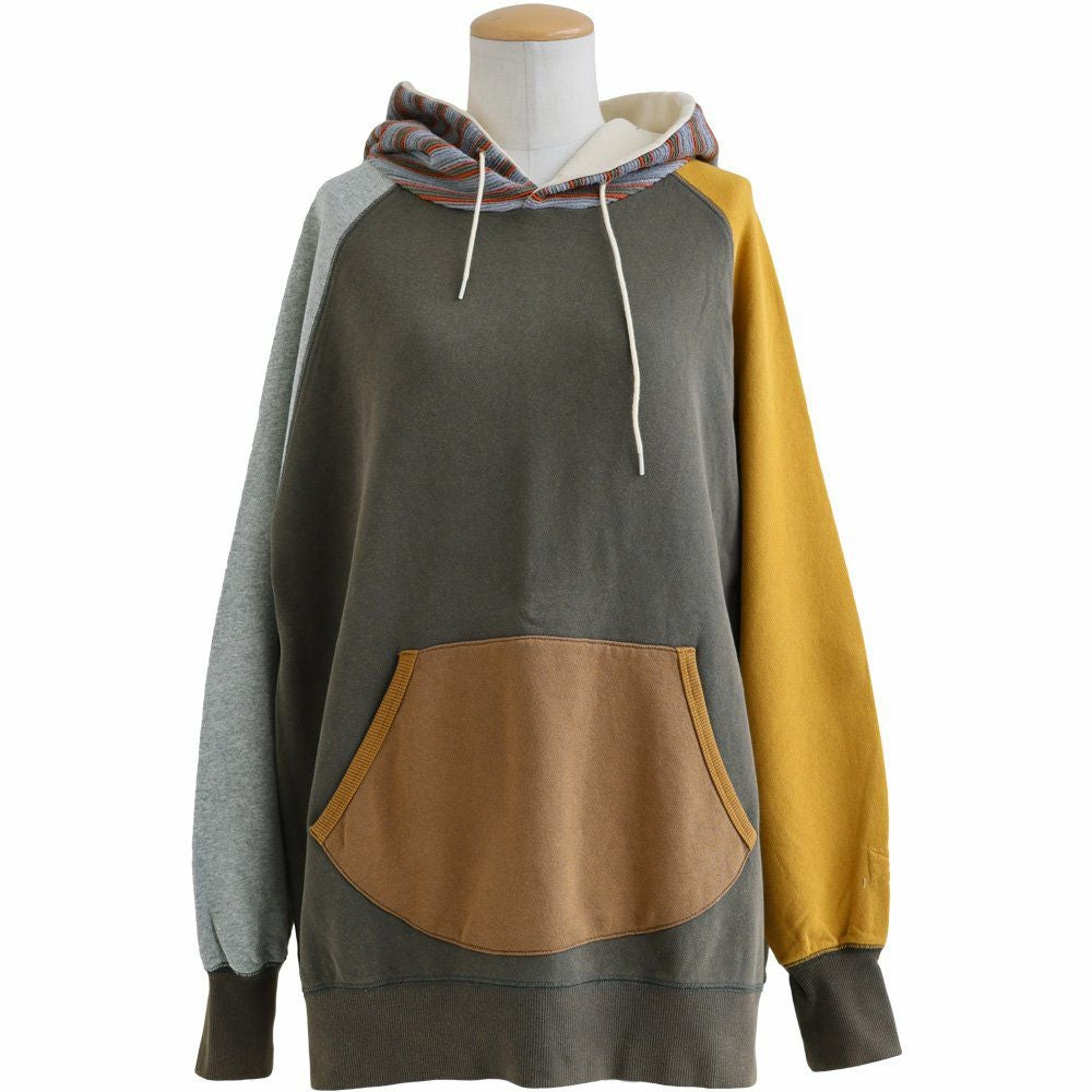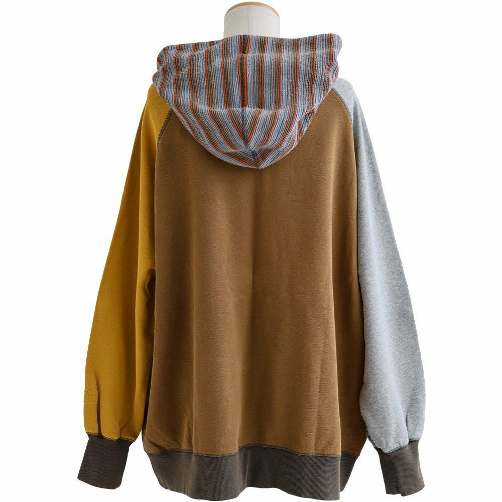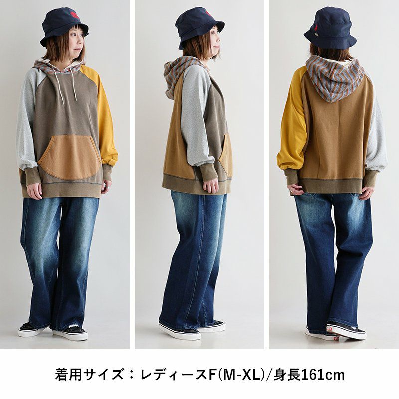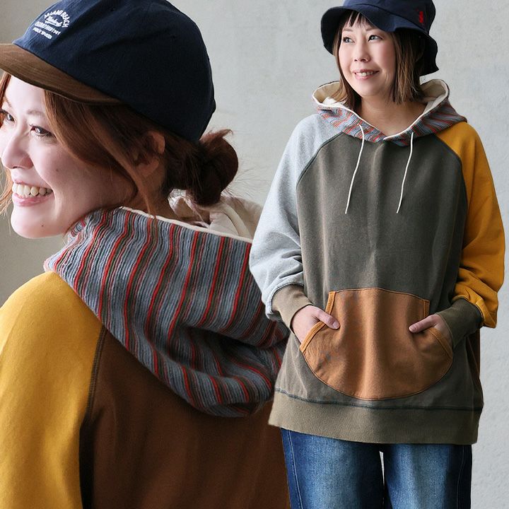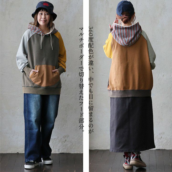 重ね着も、テクニックもいらない。すぽっとこれを着るだけ。 パーカー スウェット 長袖 レディース 綿100 コットン 裏毛 ポリエステル マルチボーダー 異素材切り替え 配色 ポケット 袖リブ ゆったり 大きいサイズ 体型カバー カジュアル 秋 冬 春 パティ GENTIL ジャンティ