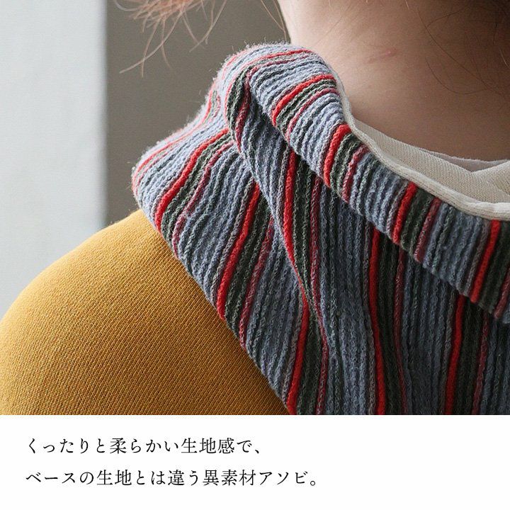テクニック要らずに遊べる、いろいろ安心なカットソー。 カットソー 長袖 レディース オフハイネック 重ね着 レイヤード 無地 ボーダー 異素材切り替え 綿100 コットン ダブルガーゼ天竺 伸縮性 すっきり カジュアル パティ GENTIL ジャンティ