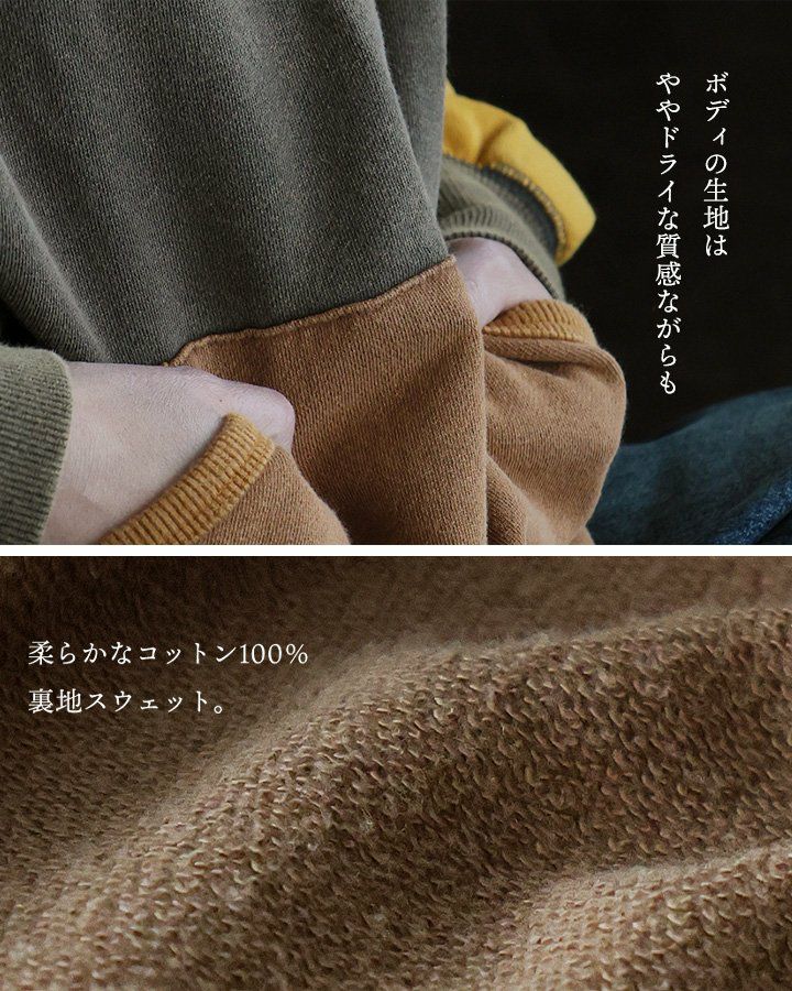 気負わず着られて、首元には「暖か」な仕掛けを。 スウェット トレーナー レディース スタンドネック ハーフジップ 無地 襟裏フリース 綿100 コットン ミニ裏毛 ゆったり 大きいサイズ 体型カバー カジュアル 秋 冬 春 パティ GENTIL ジャンティ