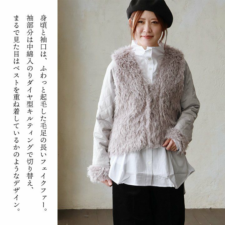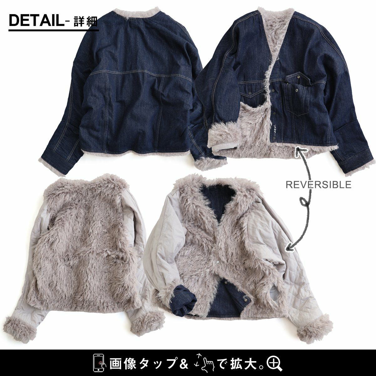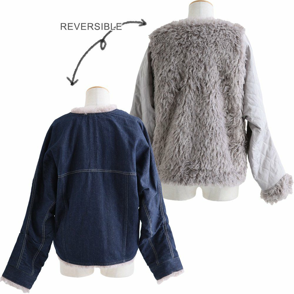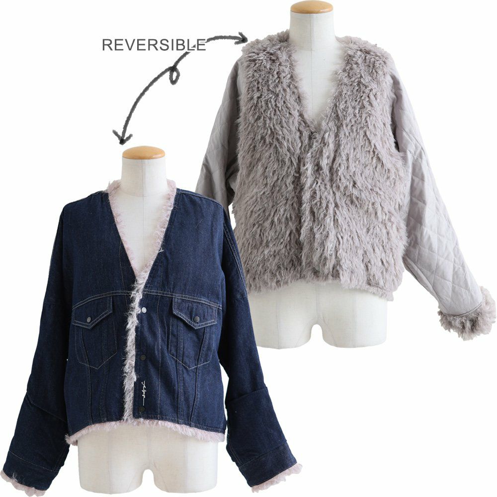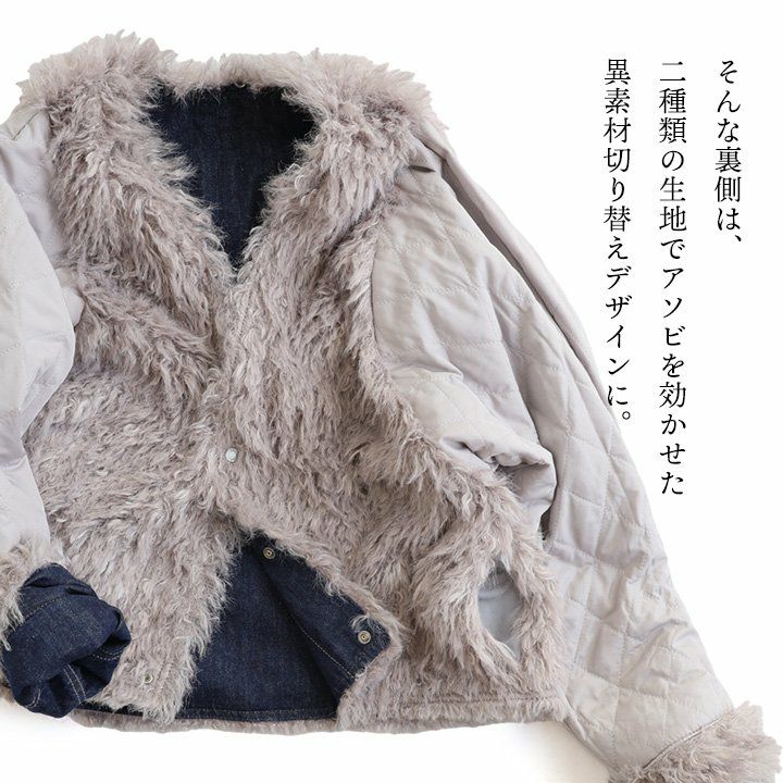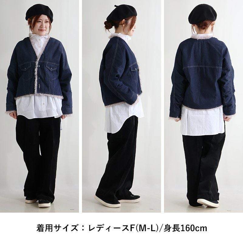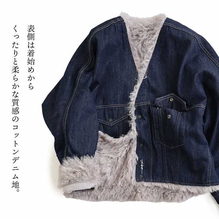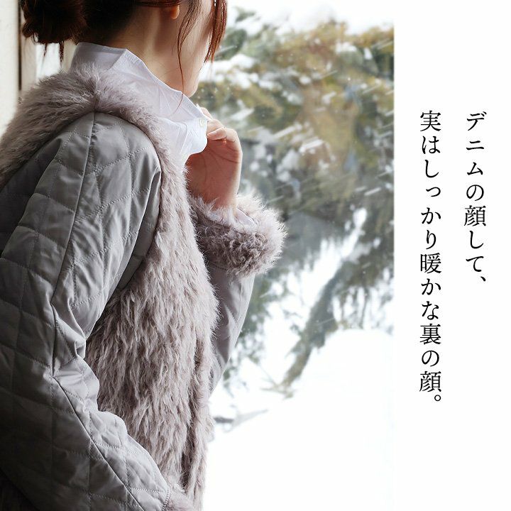デニムの顔して、実はしっかり暖かな裏の顔。 Antgauge アントゲージ デニムジャケット Gジャン レディース リバーシブル Vネック 中綿 キルティング ワンポイント ロゴ 刺繍 フェイクファー 軽い 暖かい すっきり カジュアル 秋 冬 パティ