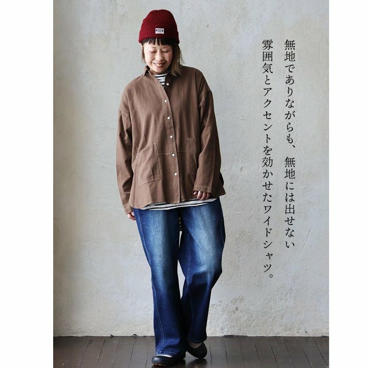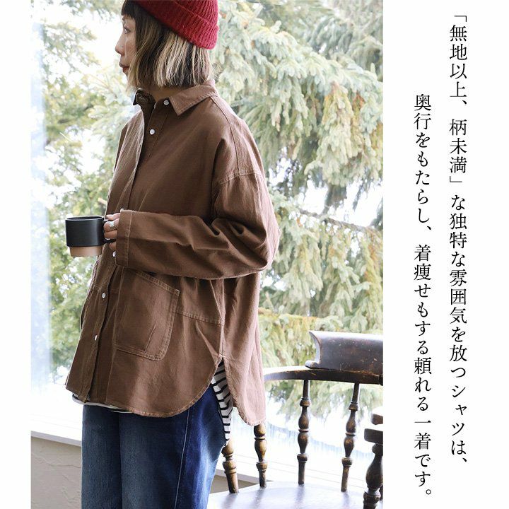 無地以上、柄未満。奥行きで魅せる「着痩せ」シャツ。 シャツ 長袖 レディース 綿100 コットン ドビーツイル ポケット 軽い 伸縮性 大きいサイズ 体型カバー 着痩せ カジュアル 秋 冬 春 パティ GENTIL ジャンティ