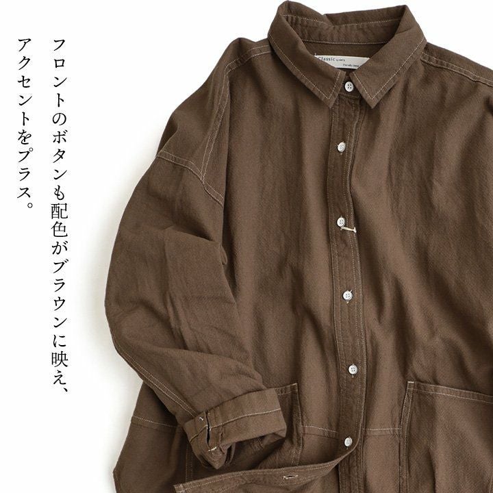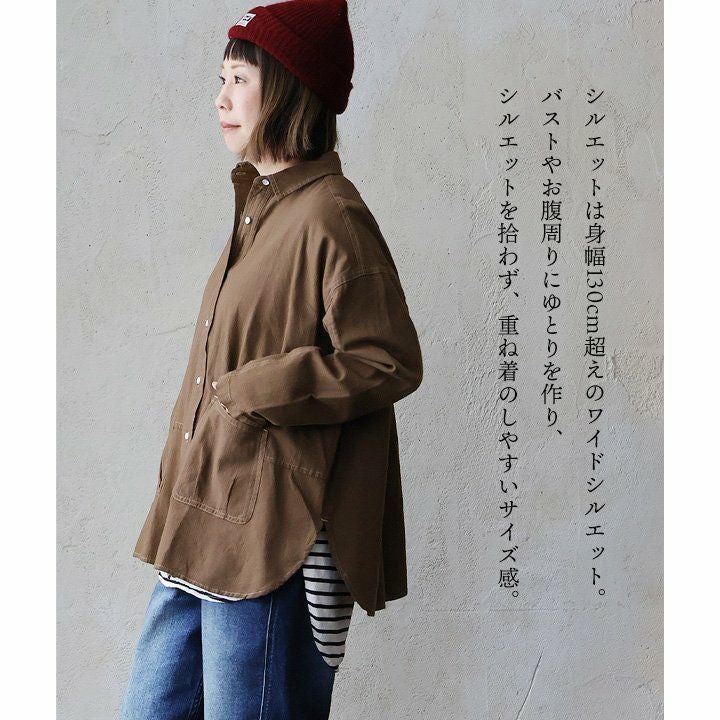重くない。硬くない。これは“着心地で選ぶシャツ”。 シャツ 長袖 レディース バンドカラー テンセルデニム 軽い 柔らか 涼しい 胸ポケット 体型カバー 大きいサイズ お尻隠れる カジュアル パティ GENTIL ジャンティ