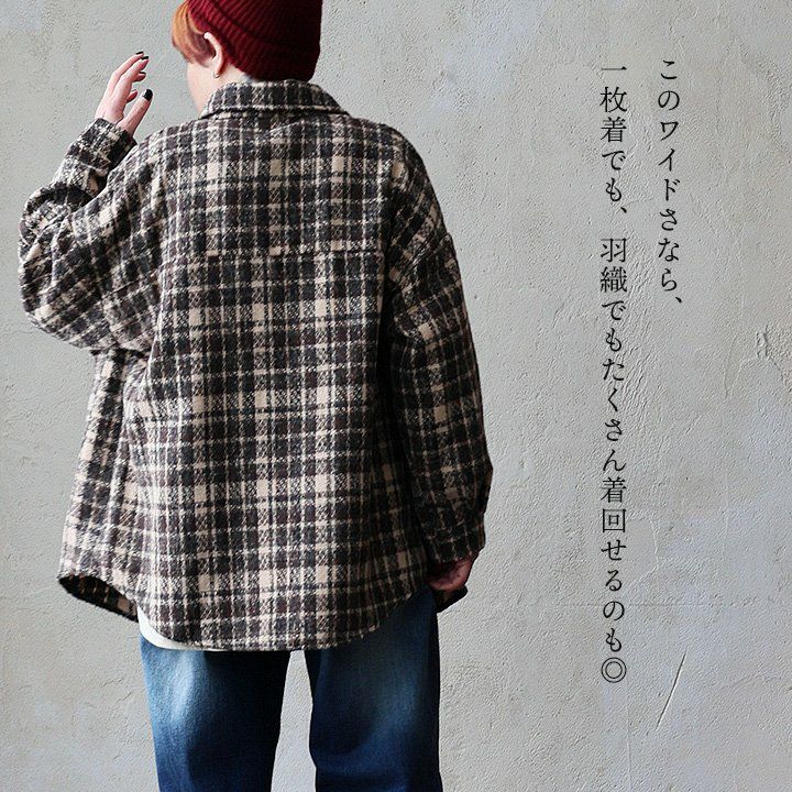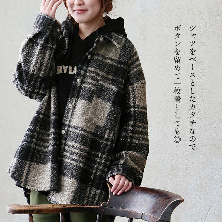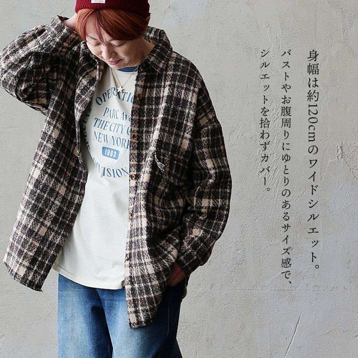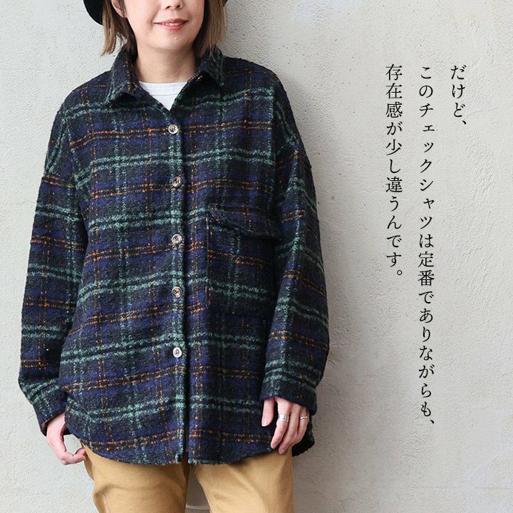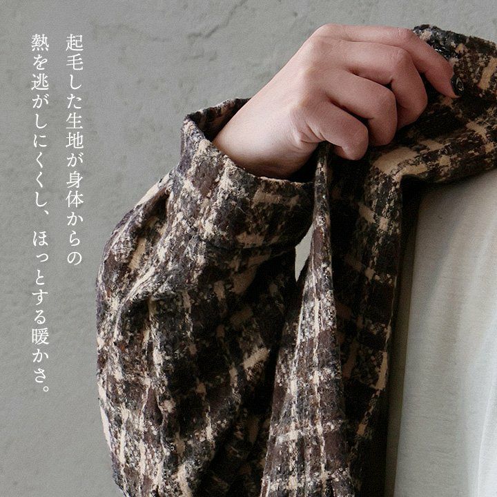大定番なのに、いつもと違った存在感。 シャツ 長袖 レディース チェック柄 ポリエステル 厚手 暖かい 起毛 軽い 重ね着 ゆったり 大きいサイズ 体型カバー カジュアル 秋 冬 パティ GENTIL ジャンティ