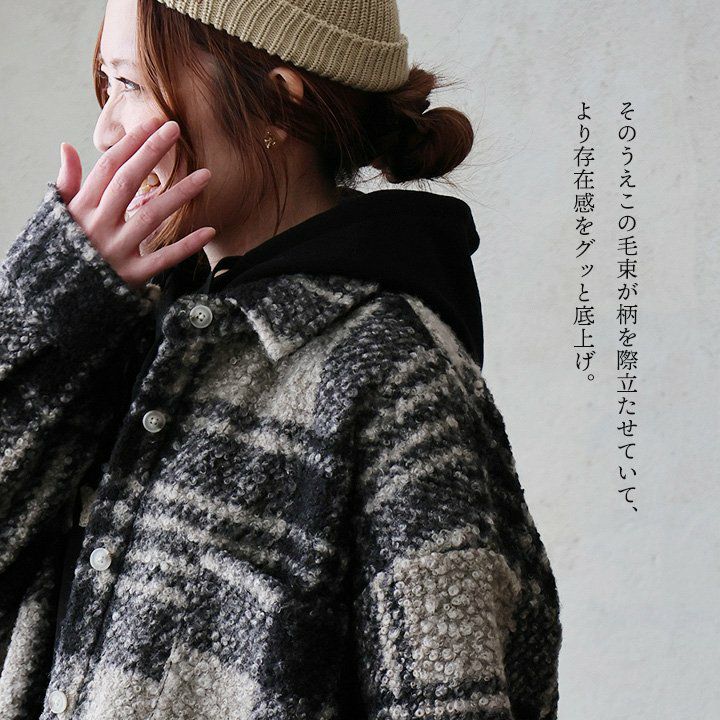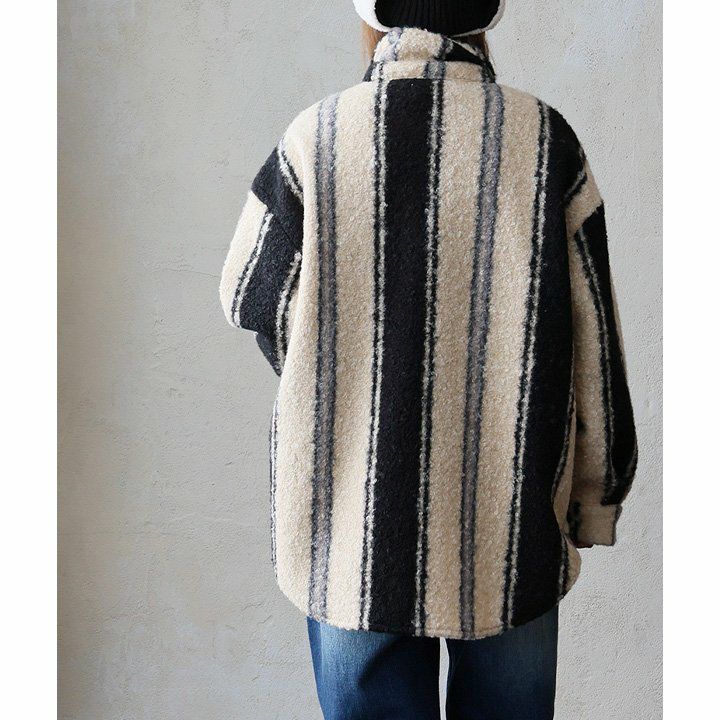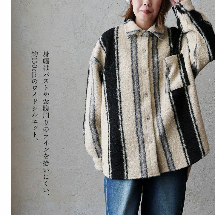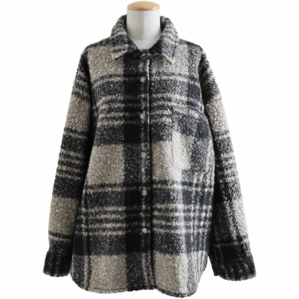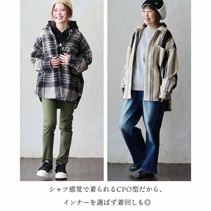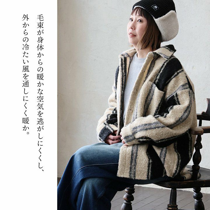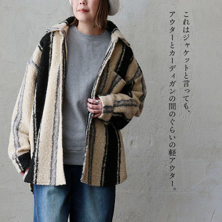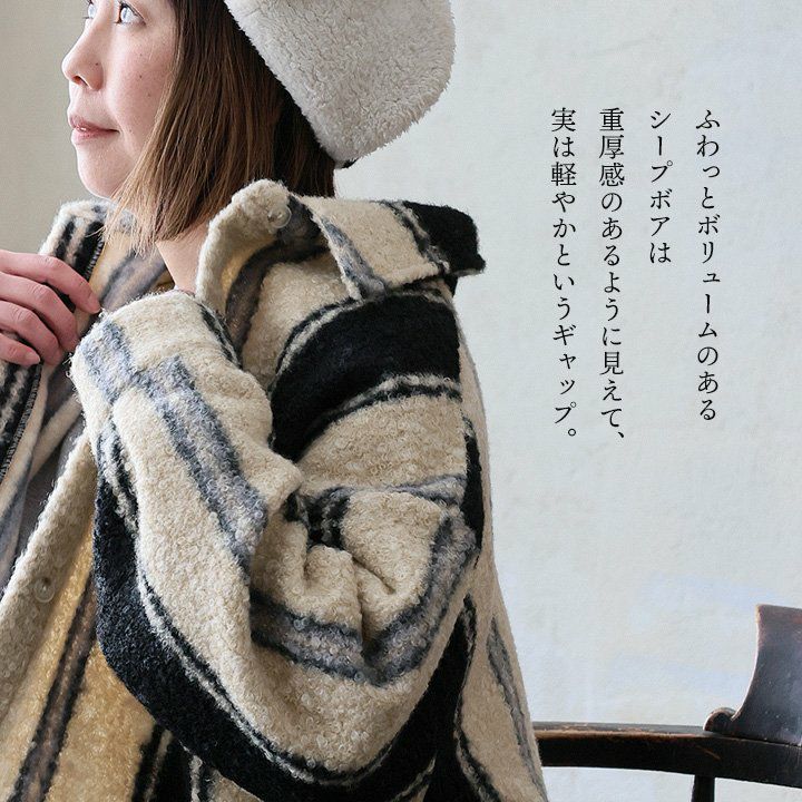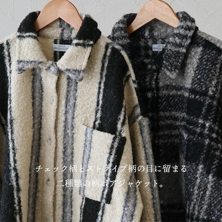 羽織ると軽くて暖かく、表情は主役級。 ジャケット 長袖 レディース 軽アウター チェック柄 ストライプ柄 総柄 シープボア 暖かい 軽い ゆったり 大きいサイズ 体型カバー カジュアル パティ GENTIL ジャンティ