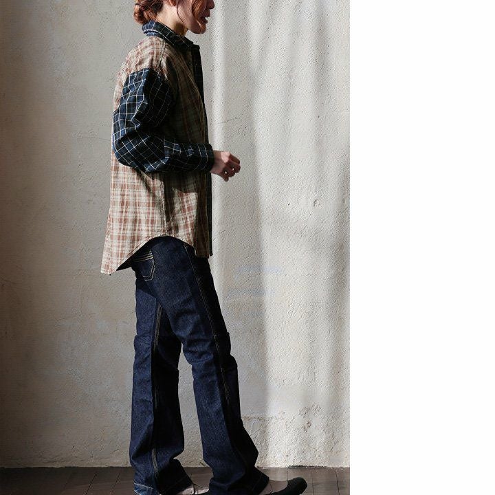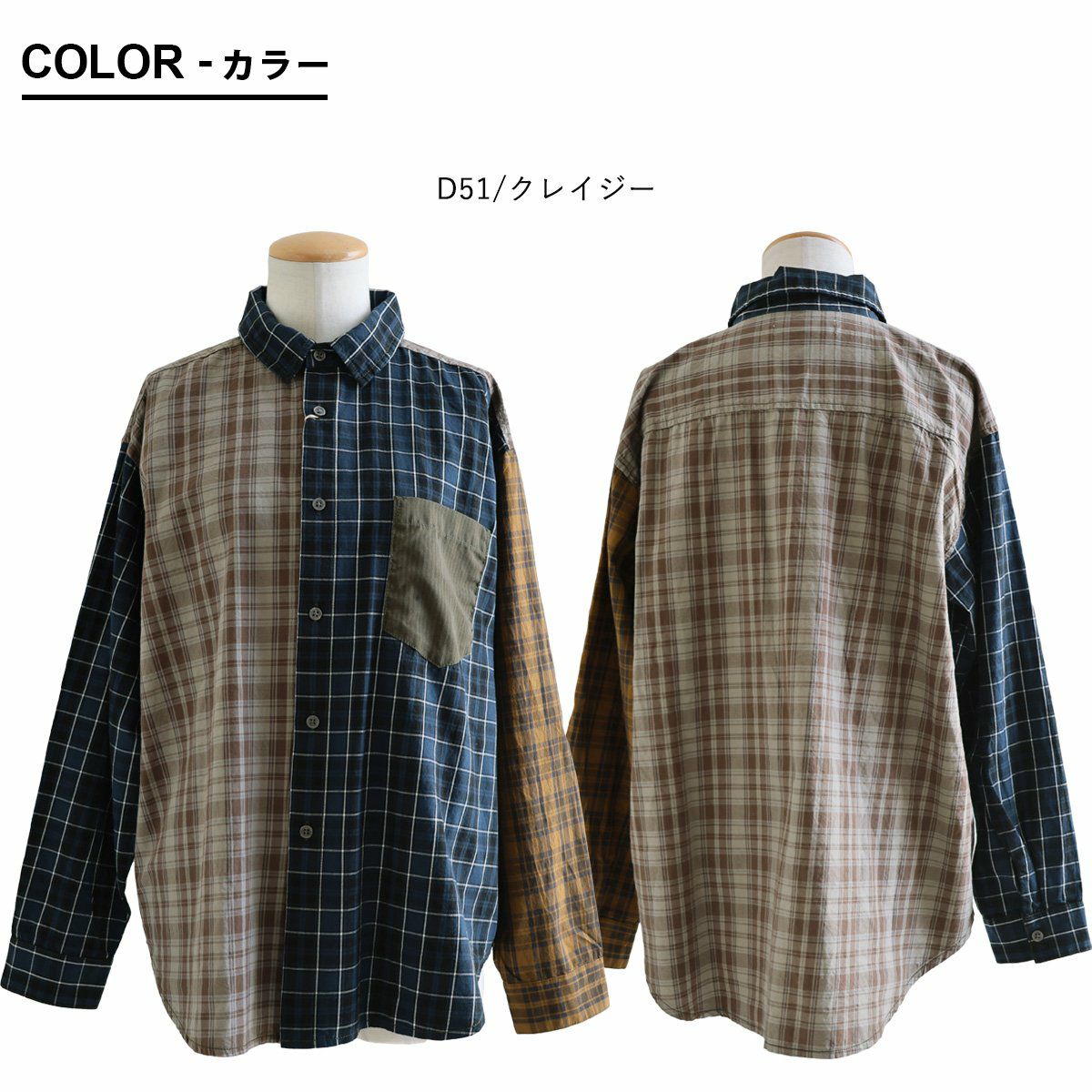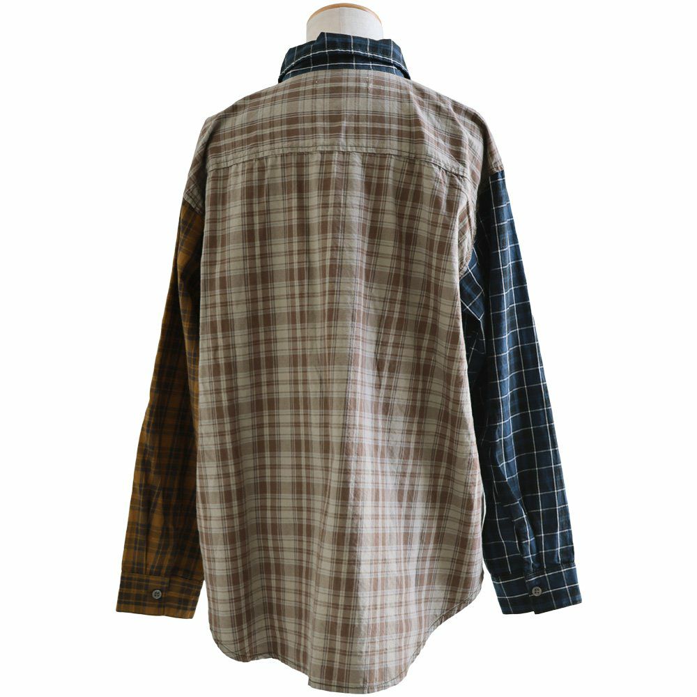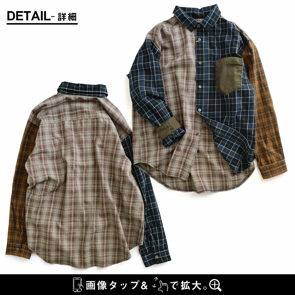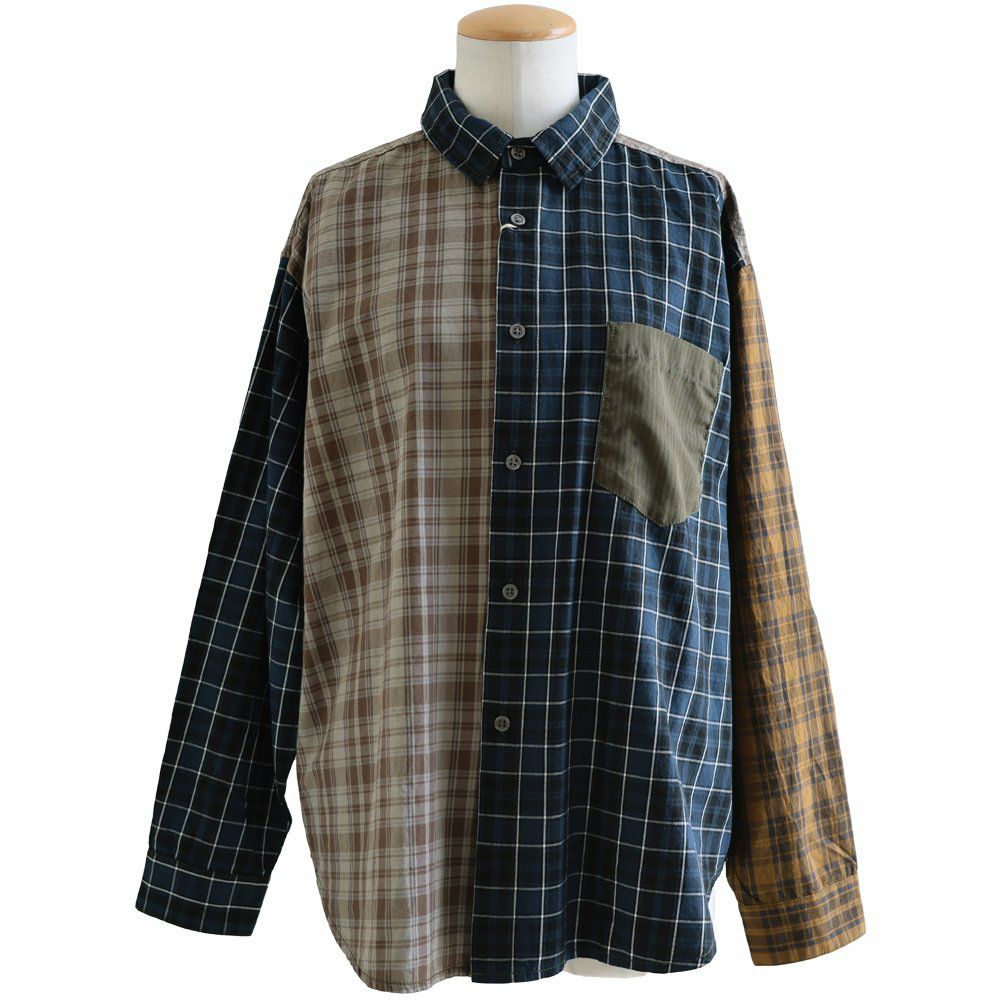 ただのチェック柄じゃ、物足りない大人に。 【メール便50】 シャツ 長袖 レディース レギュラーカラー チェック柄 クレイジー 胸ポケット 異素材切り替え 綿100 コットン 薄手 軽い ゆったり 大きいサイズ カジュアル パティ GENTIL ジャンティ