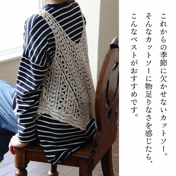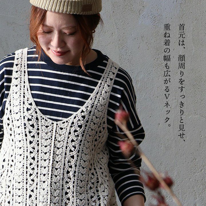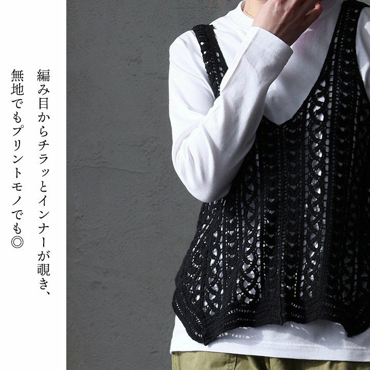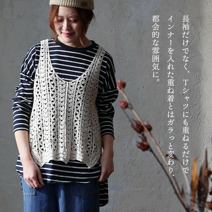 トップスに物足りなさを感じたら。 ベスト キャミソール レディース Vネック 透かし編み シアー ニット 重ね着 Tシャツ カットソー 大きいサイズ 春 おしゃれ パティ GENTIL ジャンティ
