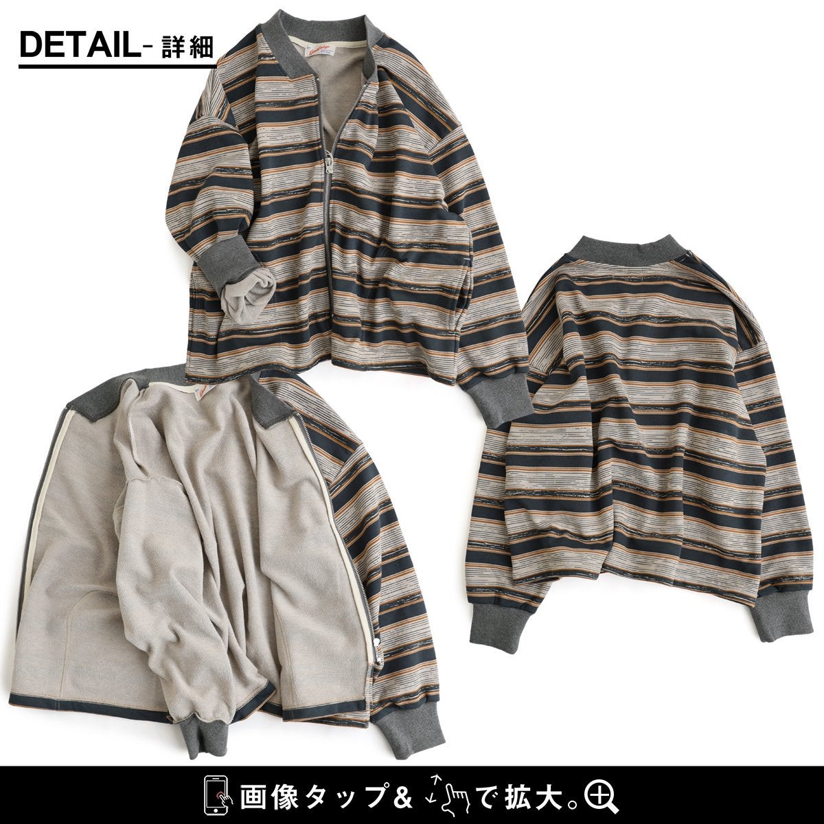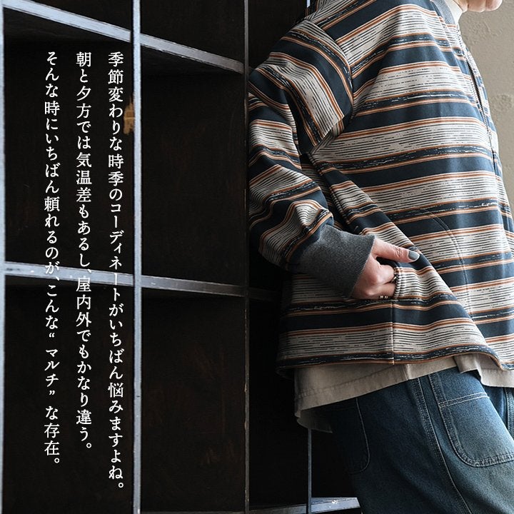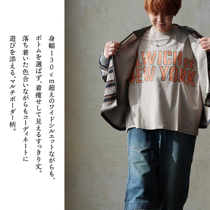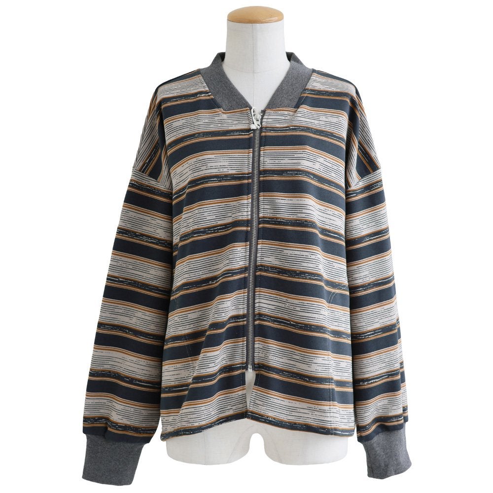 「時にはカーデ、時にはアウター」な“マルチ”ボーダー。 カーディガン カーデ ジップアップ レディース 裏毛 スウェット ボーダー ワイド すっきり ゆったり 着痩せ カジュアル パティ GENTIL ジャンティ
