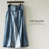 5. Antgauge アントゲージ デニムスカート マキシ丈 レディース リメイク風 綿100 コットン ノンストレッチ スリット ウエストゴム ゆったり 体型カバー カジュアル ヴィンテージ パティ