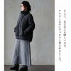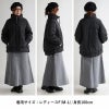 【モデルコメント】中は、カットソー1枚くらいは合わせやすそうです。すっきりとした着心地でした。 【客観的コメント】お尻はすっぽりと着丈の長さです。中に、厚手の物は合わせにくそうな感じのサイジングでしたね。