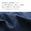 程よく厚みがあり、着始めから柔らかなコットン100%のデニム地。伸縮性・透け感はありません。