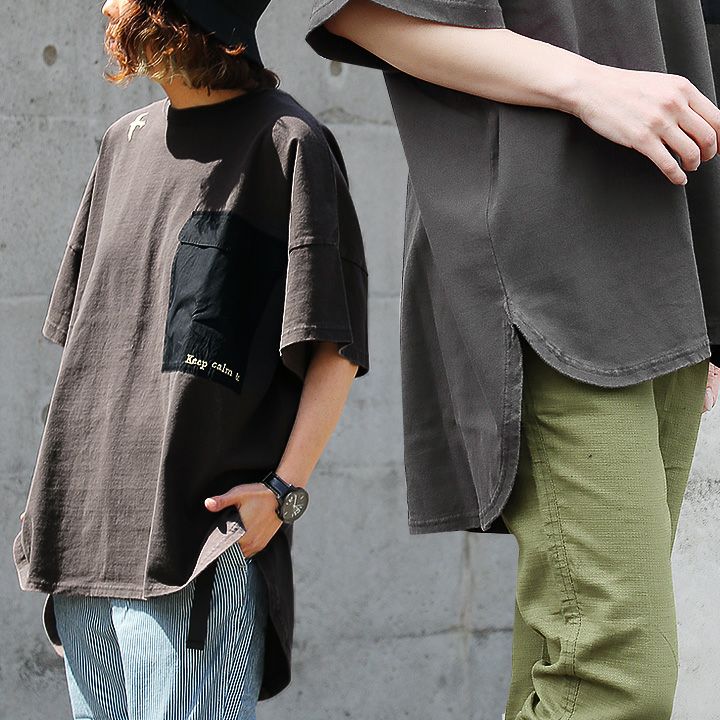 ゆるくても、着痩せも遊びも「しっかり」抜かりなく。 お尻が隠れる Tシャツ レディース ビッグTシャツ ワイドTシャツ ティーシャツ ビッグT 半袖 五分袖 5分袖 クルーネック ワイド アシメントリー着丈 裾ラウンド 胸ポケット ツバメ 刺繍 メンズライク カジュアル PATY パティ SAIL×GENTIL セイル×ジャンティ