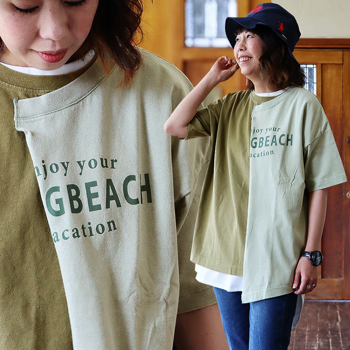 「リアルさ」がいい。 Tシャツ 半袖 レディース 褪せ色 無地 プリント カーキ 綿100% 通気性 丈夫 しっかり生地 夏 夏服 大きいサイズ ゆったり リメイク カジュアル メンズライク PATY パティ GENTIL ジャンティ