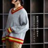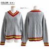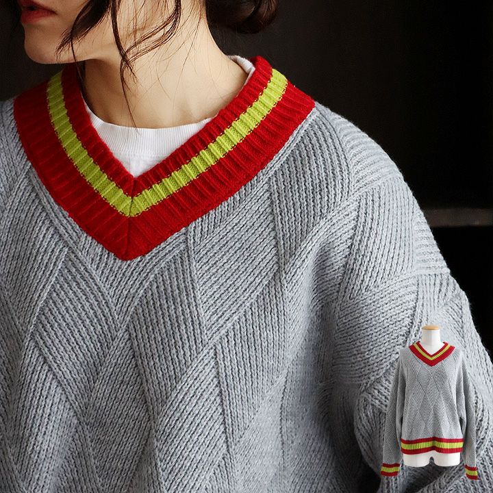 ライン×柄のアソビが面白い。 ニット セーター 長袖 Vネック レディース ダイヤ柄 配色ライン アクリル100% 厚手 チクチクしない 伸縮性 ゆったり 大きいサイズ すっきり カジュアル レトロ 秋 冬 パティ GENTIL ジャンティ