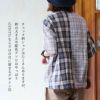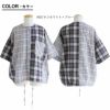 パッと明るく、ふわっと軽く、着痩せまで。 【メール便50】 シャツ 5分袖 レディース ノーカラー チェック柄 配色切り替え コットン ポリエステル 薄手 通気性 軽い ゆったり 大きいサイズ 体型カバー 着痩せ すっきり カジュアル 夏 パティ GENTIL ジャンティ