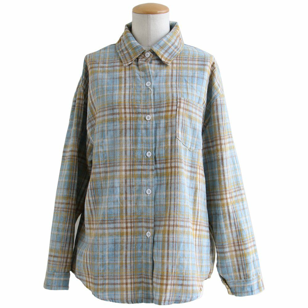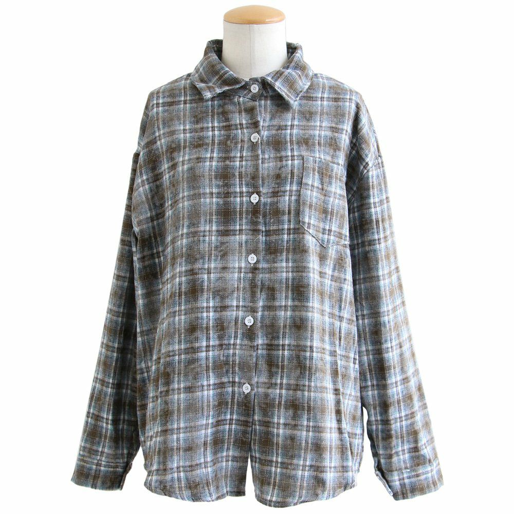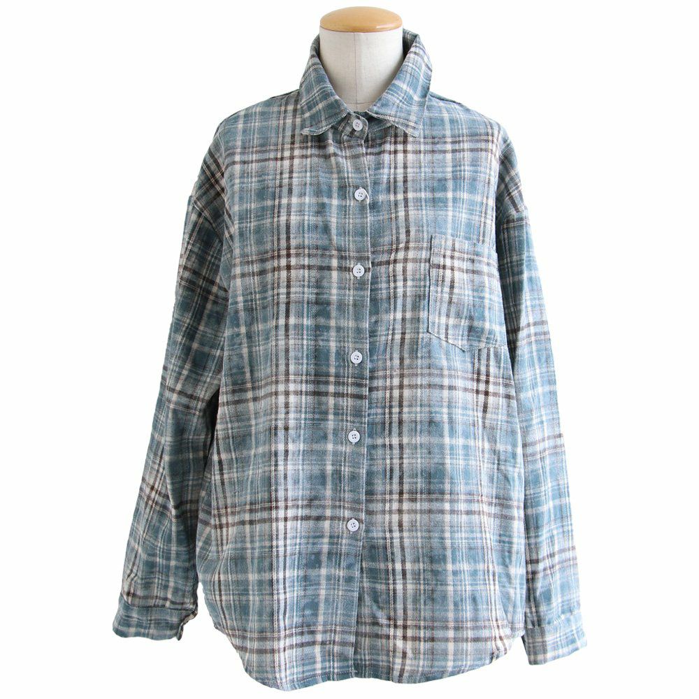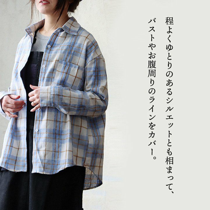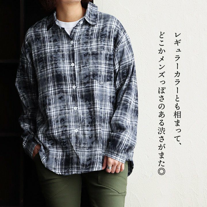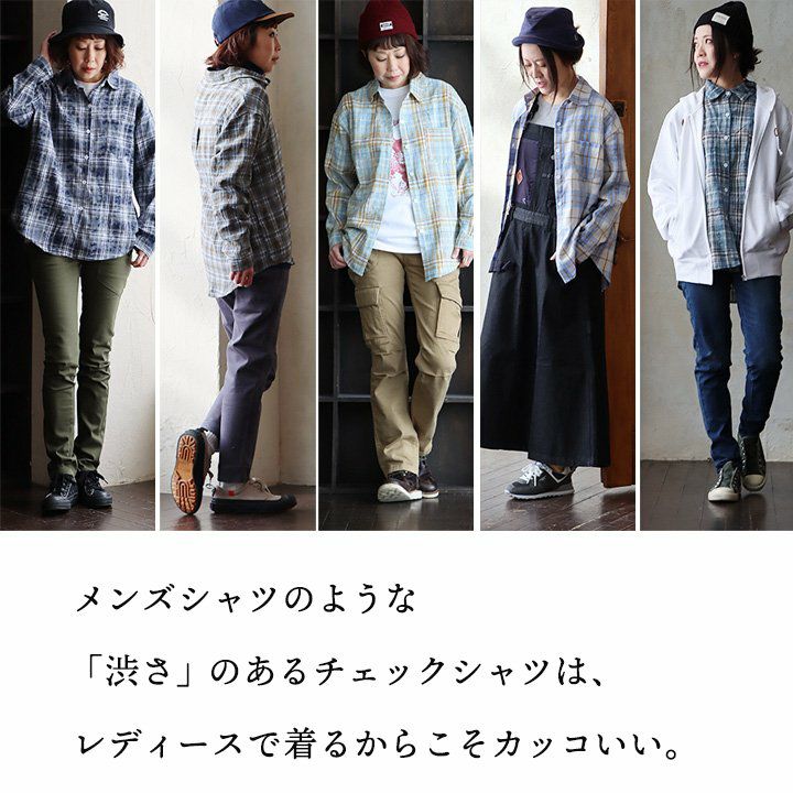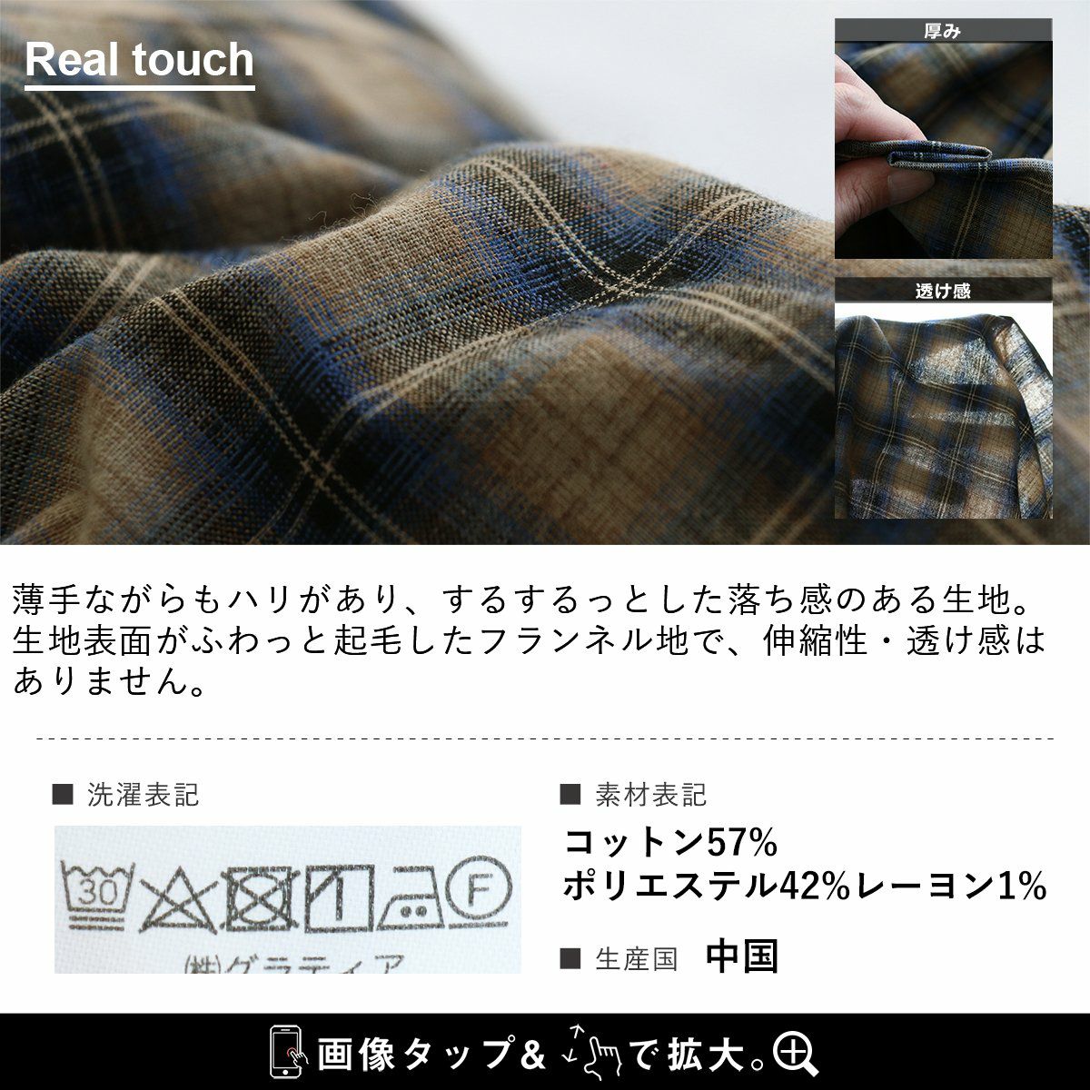 このくらいの「渋」シャツは、レディースだからこそカッコいい。 シャツ 長袖 レディース チェックシャツ ブリーチ 褪せ色 コットン ポリエステル 薄手 軽い フランネル 起毛 すっきり 体型カバー カジュアル メンズライク 秋 冬 パティ GENTIL ジャンティ