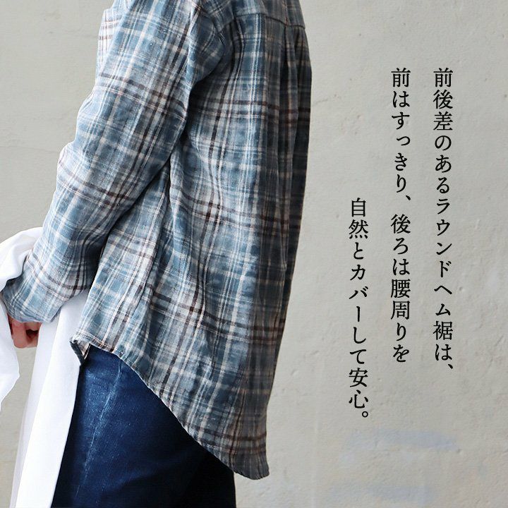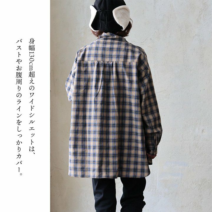わたしには、「さらっと着られる『着痩せ』シャツ」がある。 シャツ チュニック 長袖 レディース スタンド スキッパーネック コットン ギンガム チェック 着痩せ お尻が隠れる フレア ワイド 変則ピッチボタン 軽い カジュアル パティ GENTIL ジャンティ