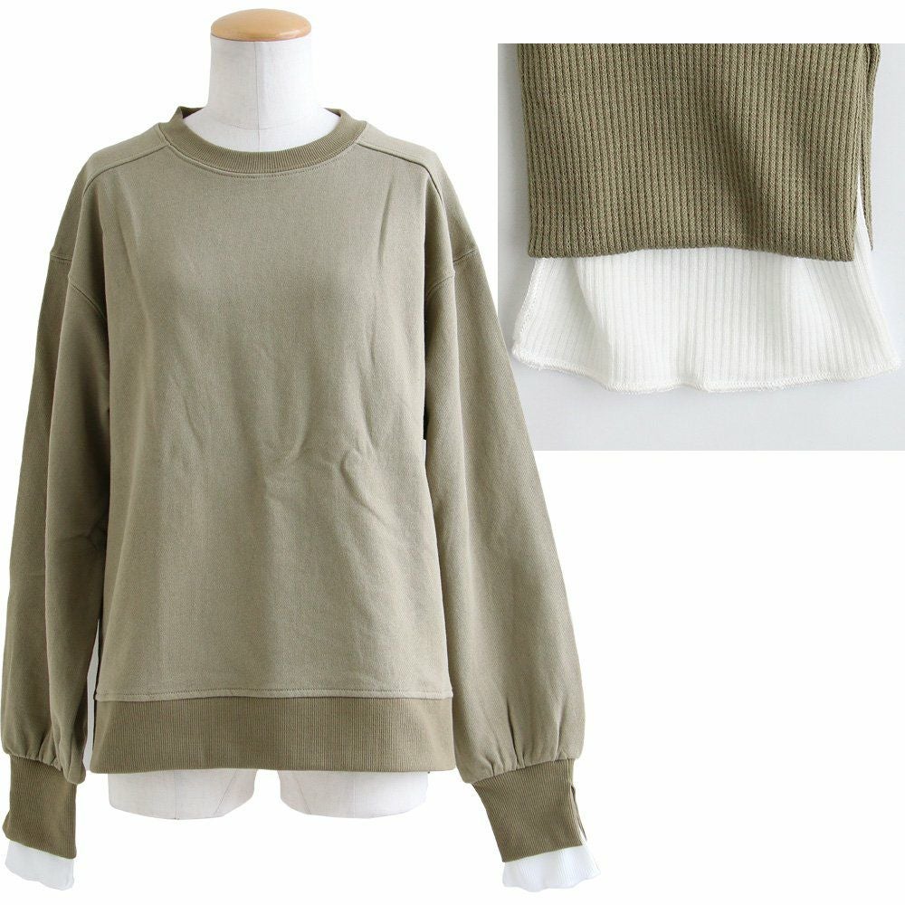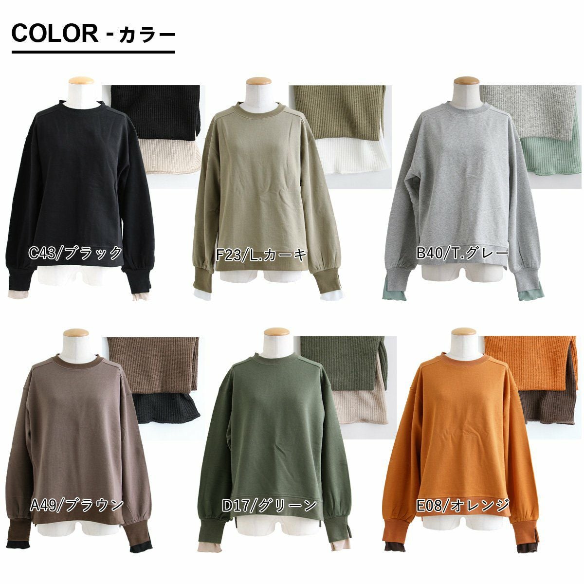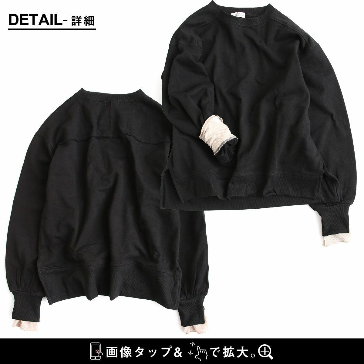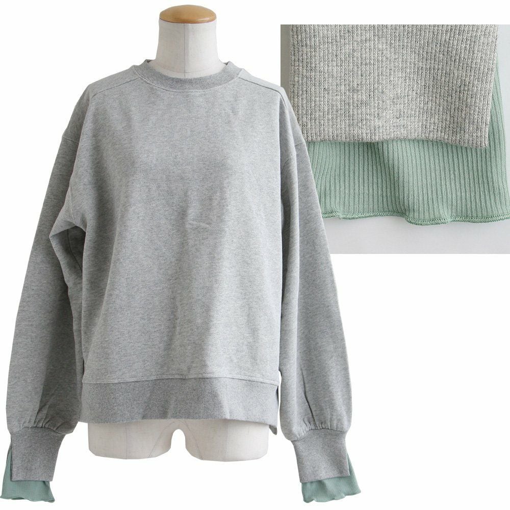 「ちょっと」のことが、『大きな効果』に。 スウェット トレーナー 長袖 クルーネック レディース 綿100 コットン ミニ裏毛 重ね着風 異素材切り替え 袖フリル ゆったり 大きいサイズ カジュアル 秋 冬 パティ GENTIL ジャンティ