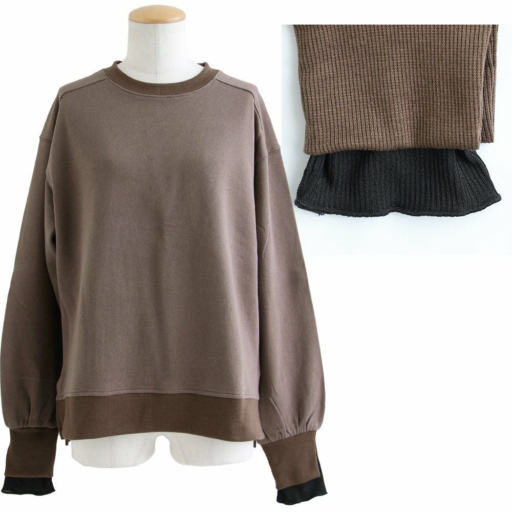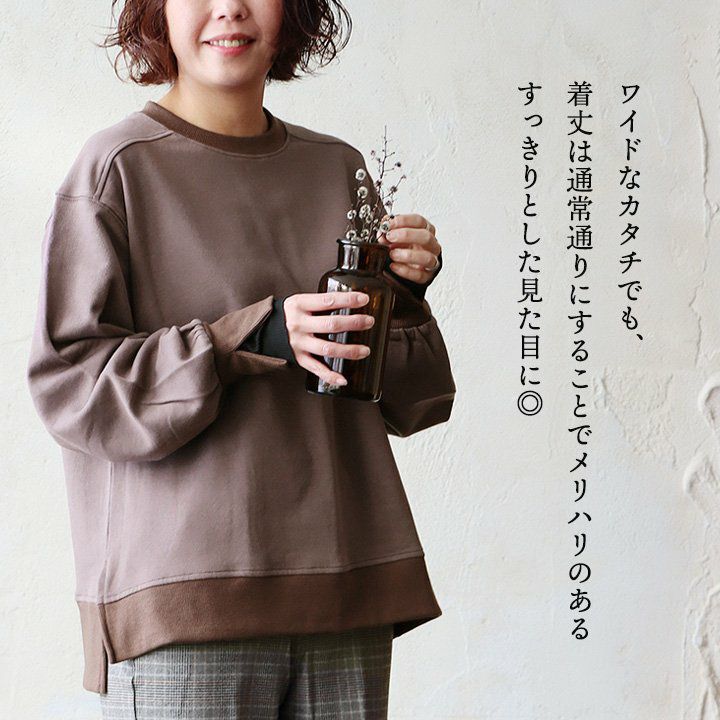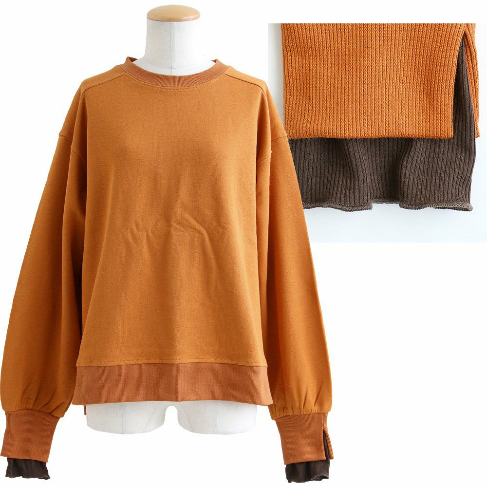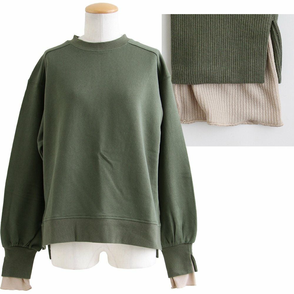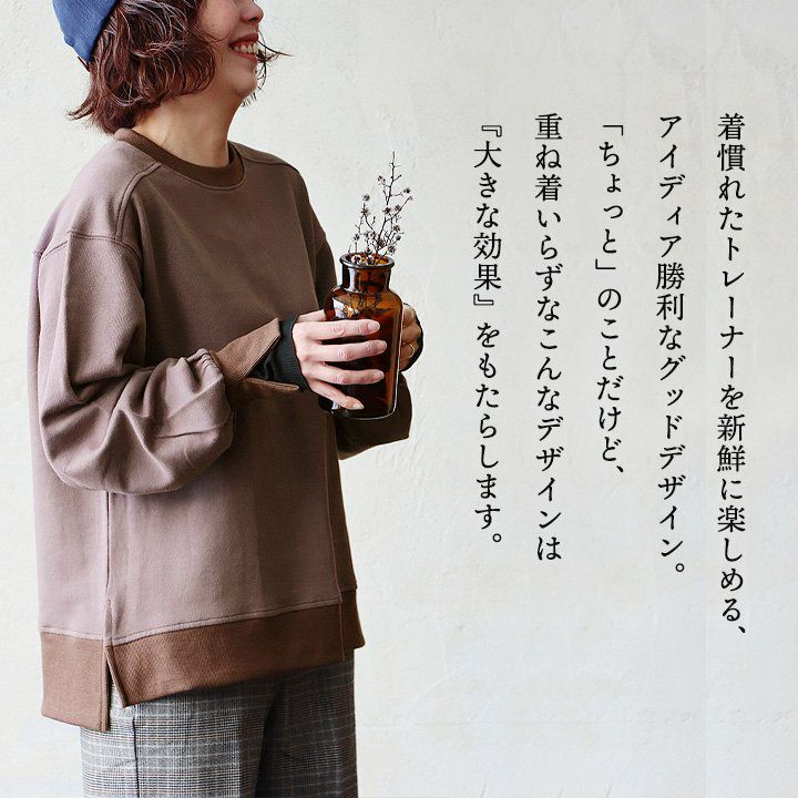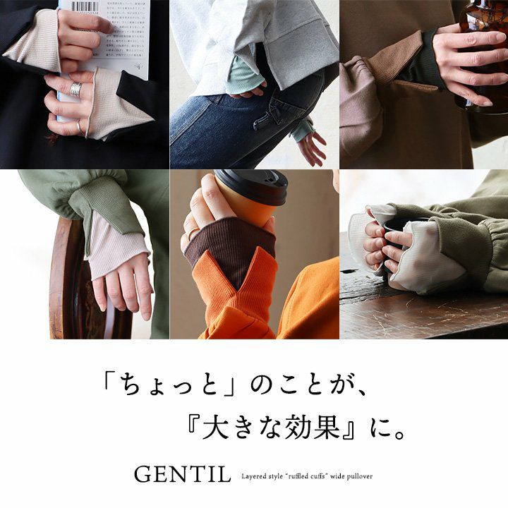 「ちょっと」のことが、『大きな効果』に。 スウェット トレーナー 長袖 クルーネック レディース 綿100 コットン ミニ裏毛 重ね着風 異素材切り替え 袖フリル ゆったり 大きいサイズ カジュアル 秋 冬 パティ GENTIL ジャンティ