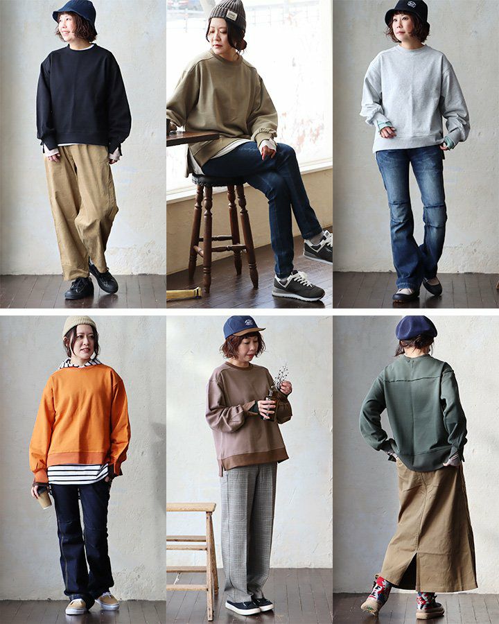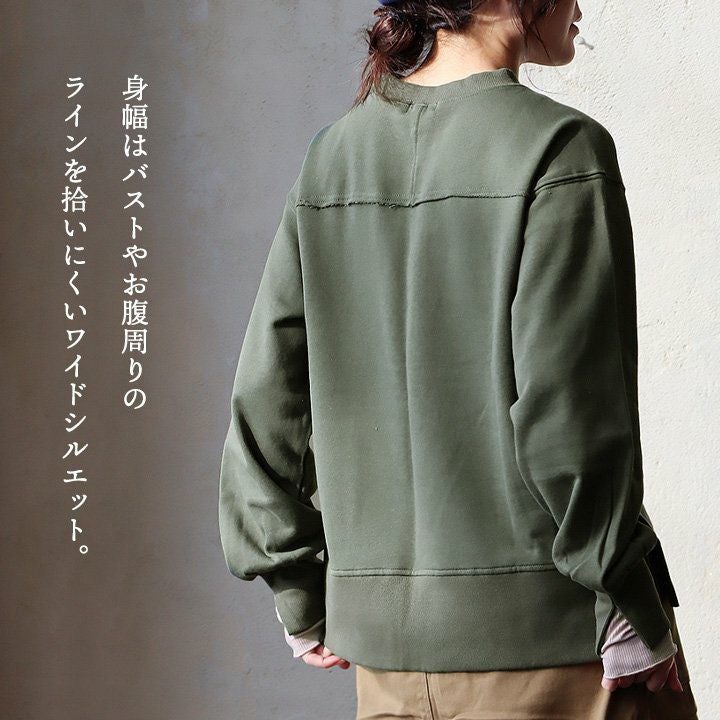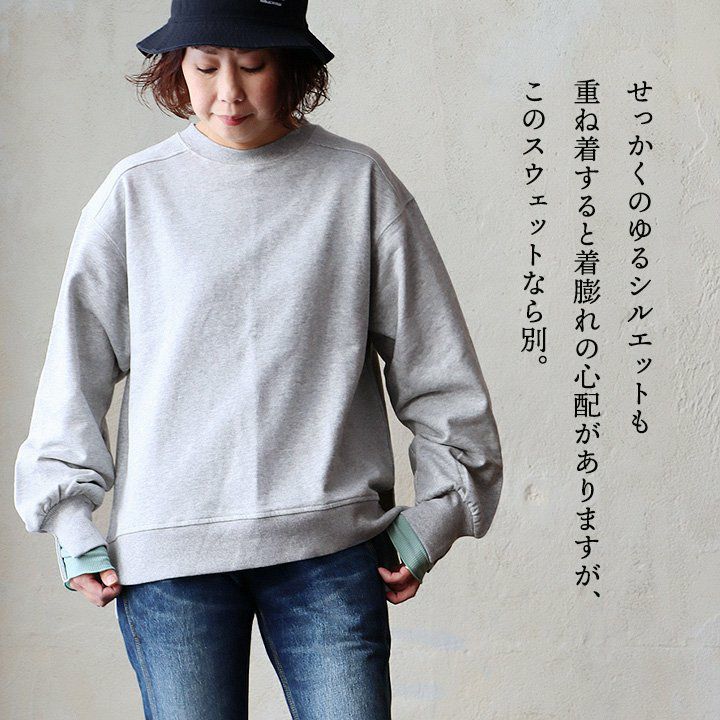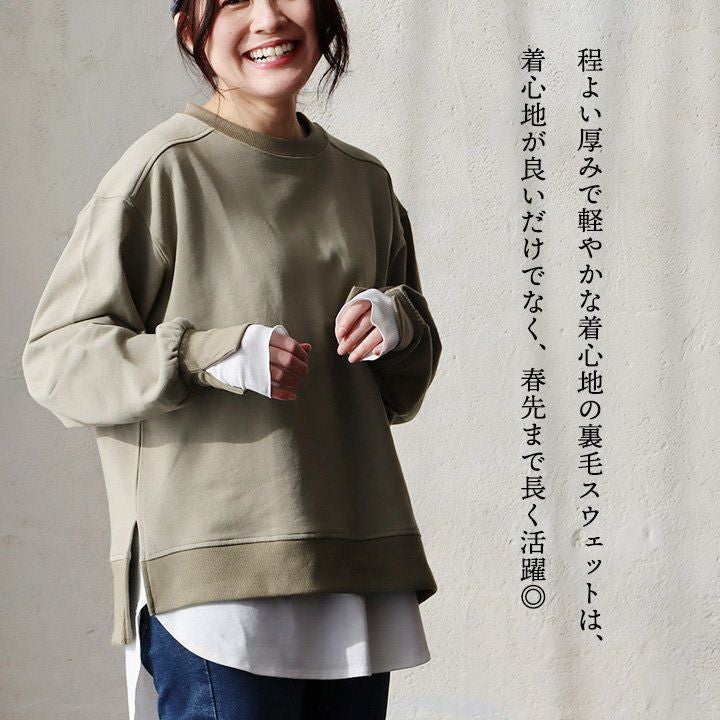 ネックが違うだけで、いつものスウェットも「キレイ」に。 スウェット 長袖 レディース Vネック 重ね着 綿100 コットン ミニ裏毛 無地 伸縮性 ゆったり 大きいサイズ 体型カバー カジュアル パティ GENTIL ジャンティ