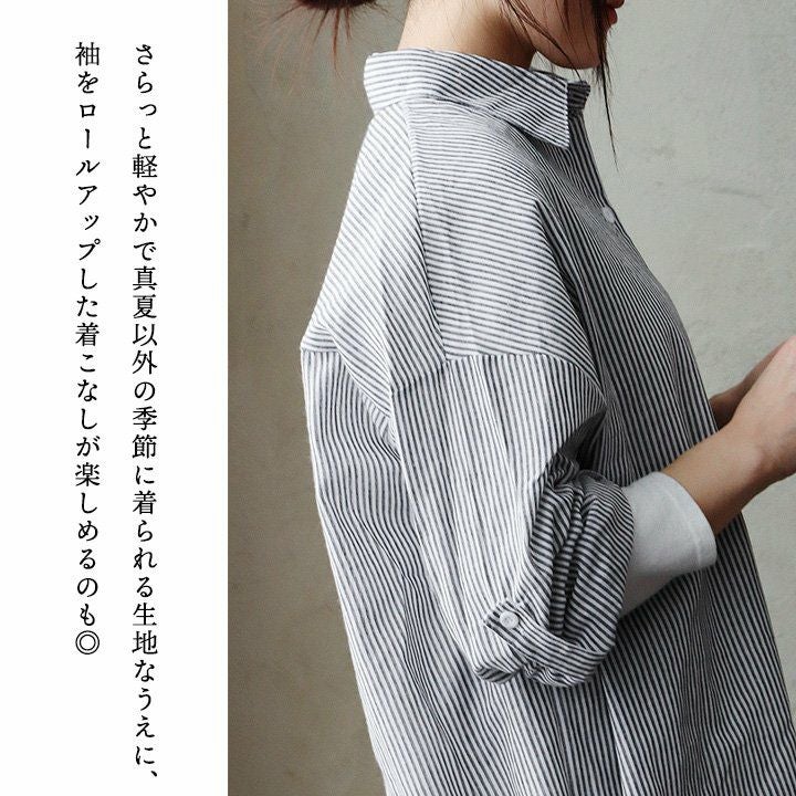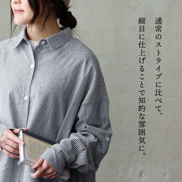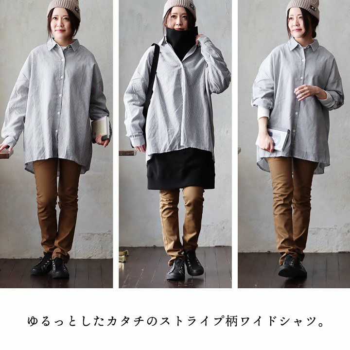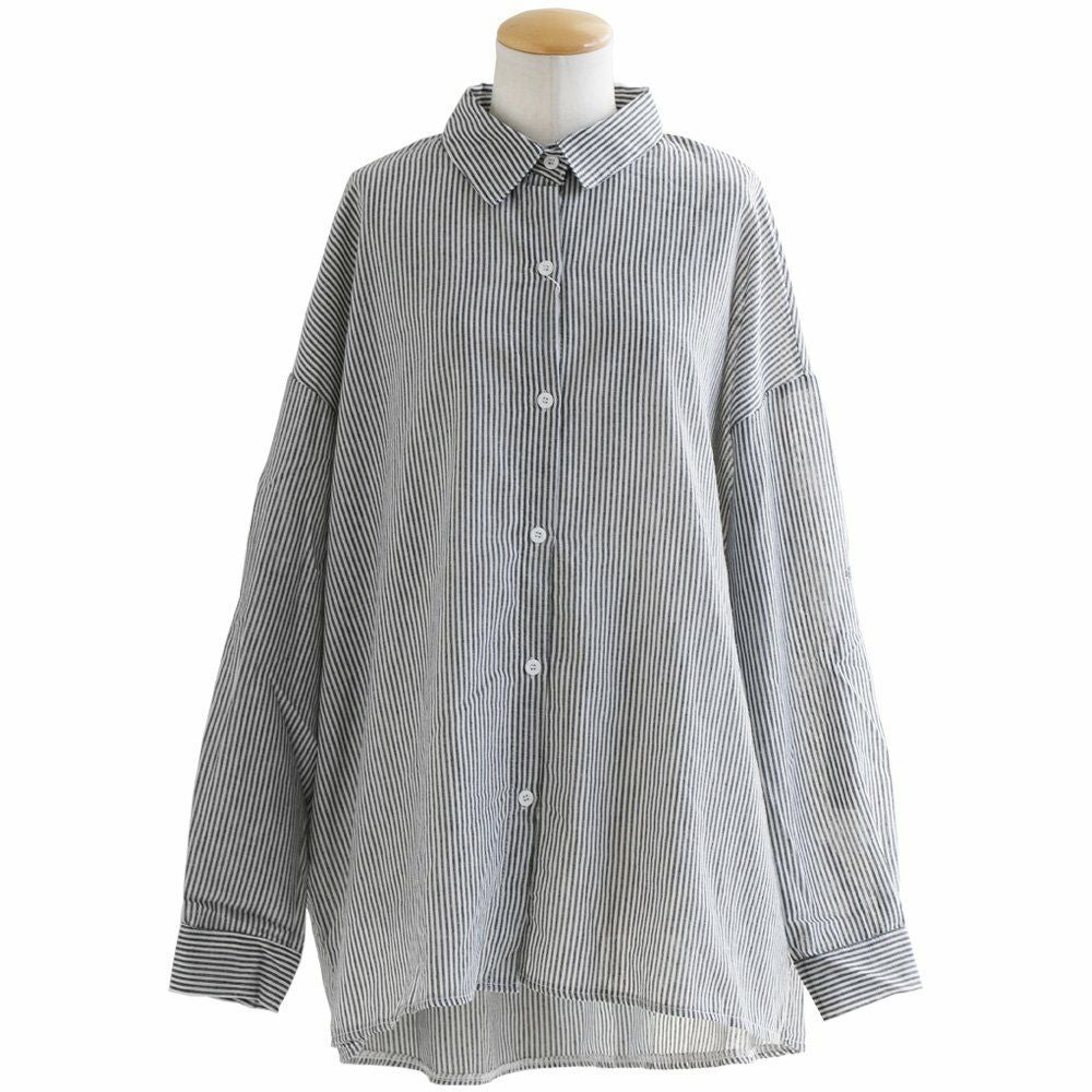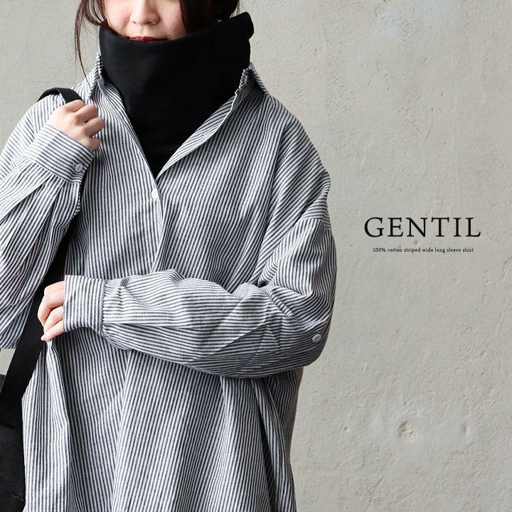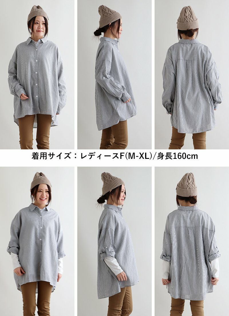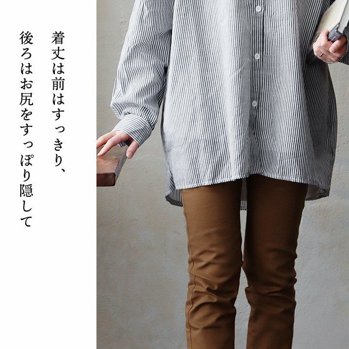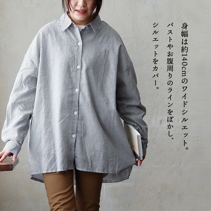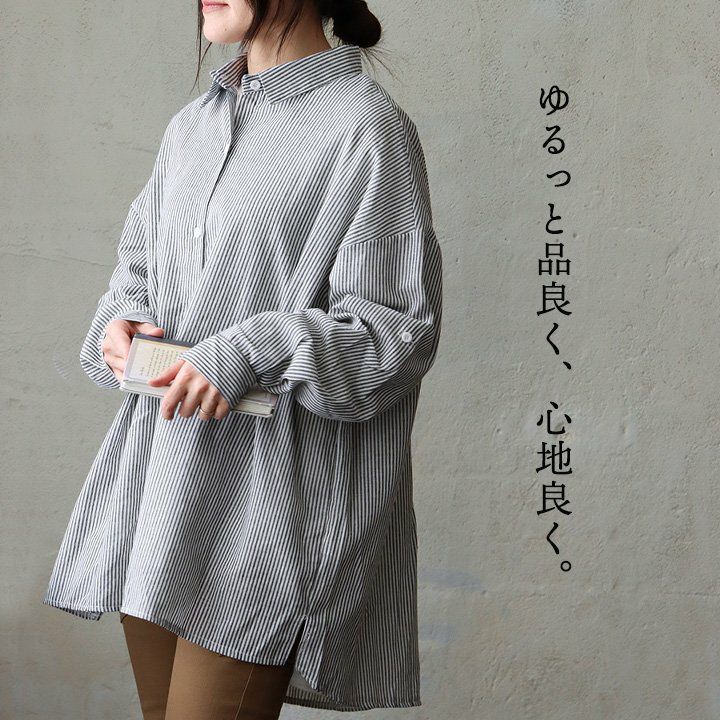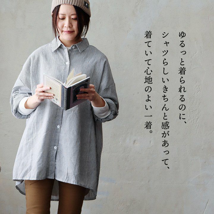 ゆるっと品良く、心地良く。 シャツ 長袖 レディース お尻隠れる ストライプ 綿100 コットン ドライ 軽い 薄手 ゆったり 大きいサイズ 体型カバー カジュアル 春 秋 冬 パティ GENTIL ジャンティ