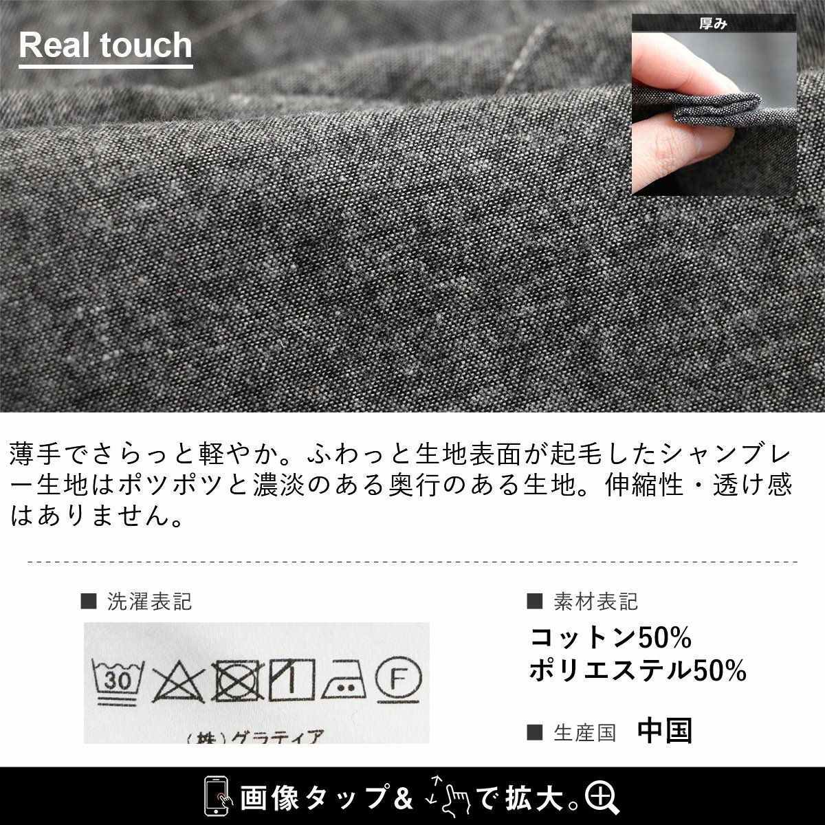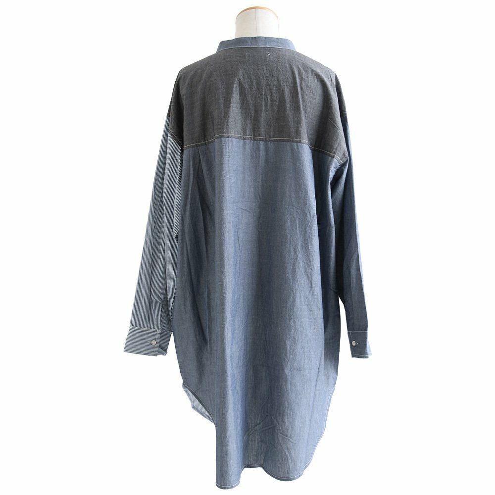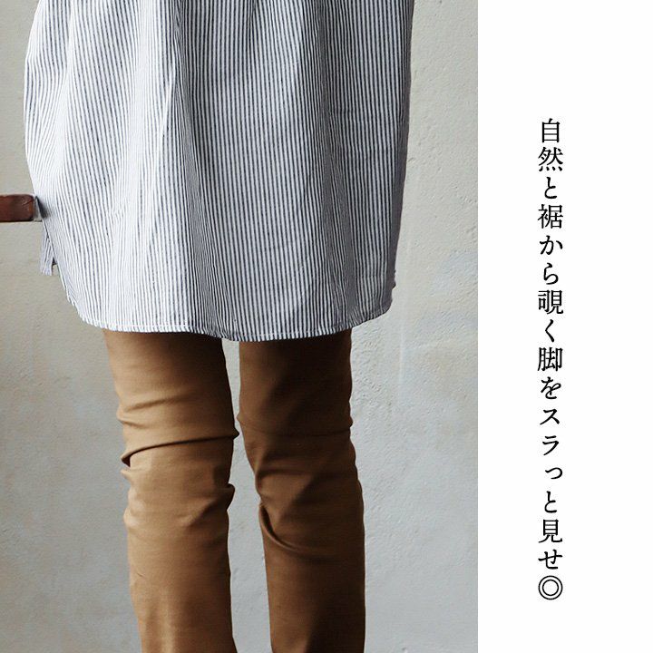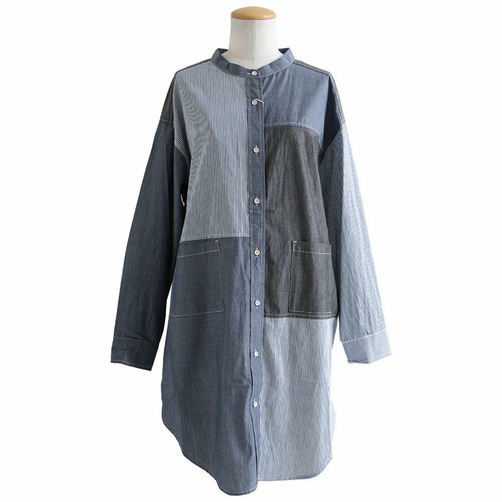 雰囲気の違う生地で、ヴィンテージライクな存在感。 チュニックシャツ シャツ 長袖 レディース バンドカラー 無地 ストライプ 配色 綿100 コットン シャンブレー 薄手 軽い ゆったり お尻隠れる 大きいサイズ 体型カバー カジュアル 春 パティ GENTIL ジャンティ