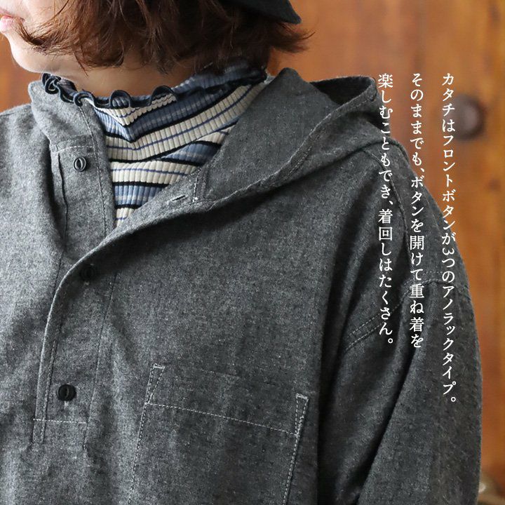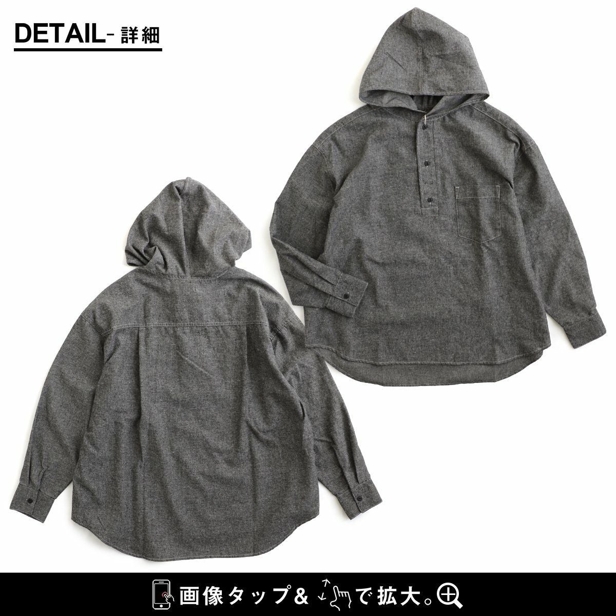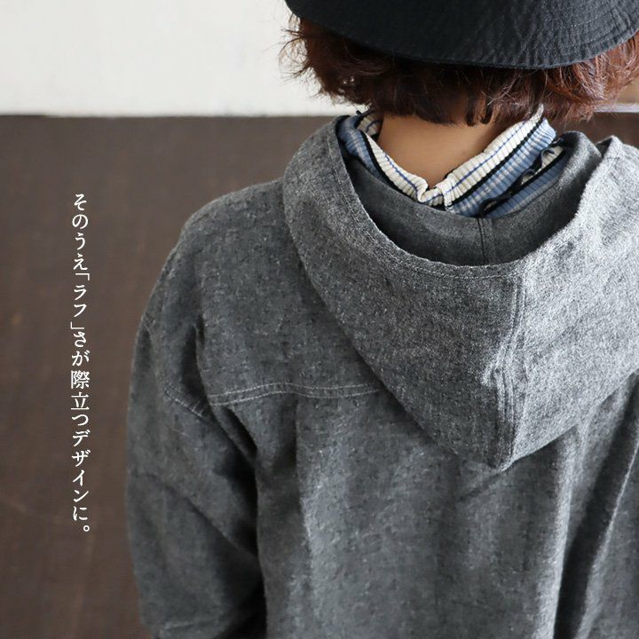 「きちんとラフ」な大人パーカー。 シャツ シャツパーカー 長袖 アノラック レディース フード付き 重ね着 シャンブレー 起毛 薄手 軽い コットン ポリエステル 体型カバー 着痩せ お尻隠れる カジュアル 秋 冬 パティ GENTIL ジャンティ