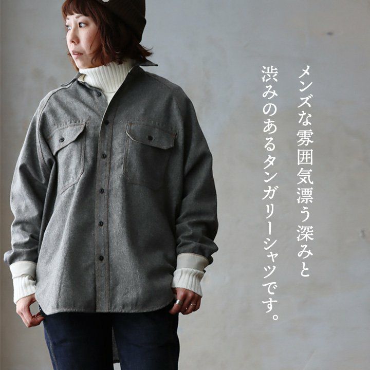 深みと渋み。 シャツ 長袖 レディース お尻隠れる 体型カバー ポリエステル ダンガリー 配色切り替え パイピング ゆったり 大きいサイズ カジュアル メンズライク 秋 冬 パティ GENTIL ジャンティ