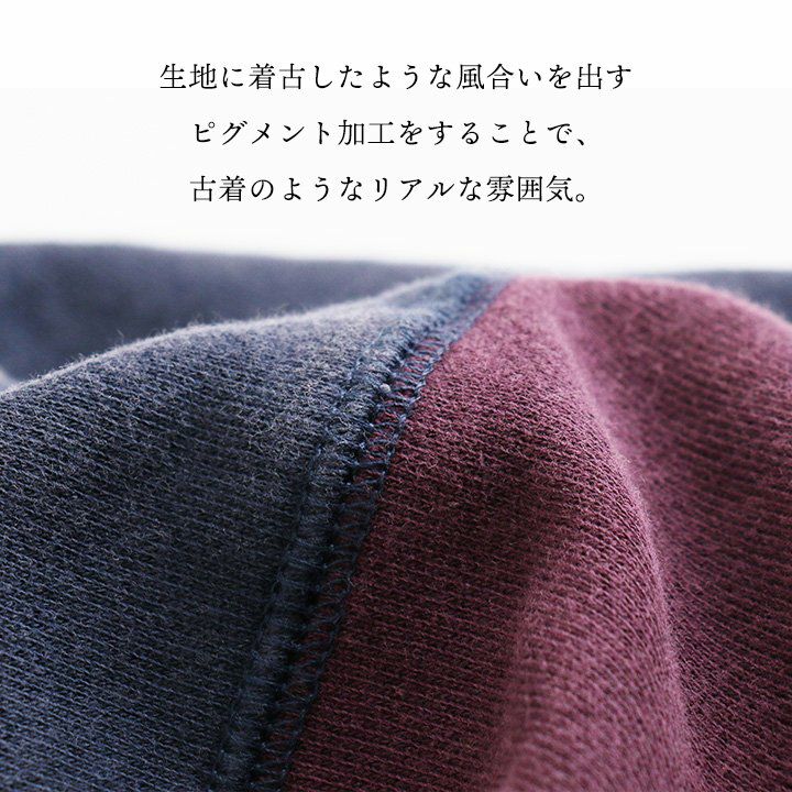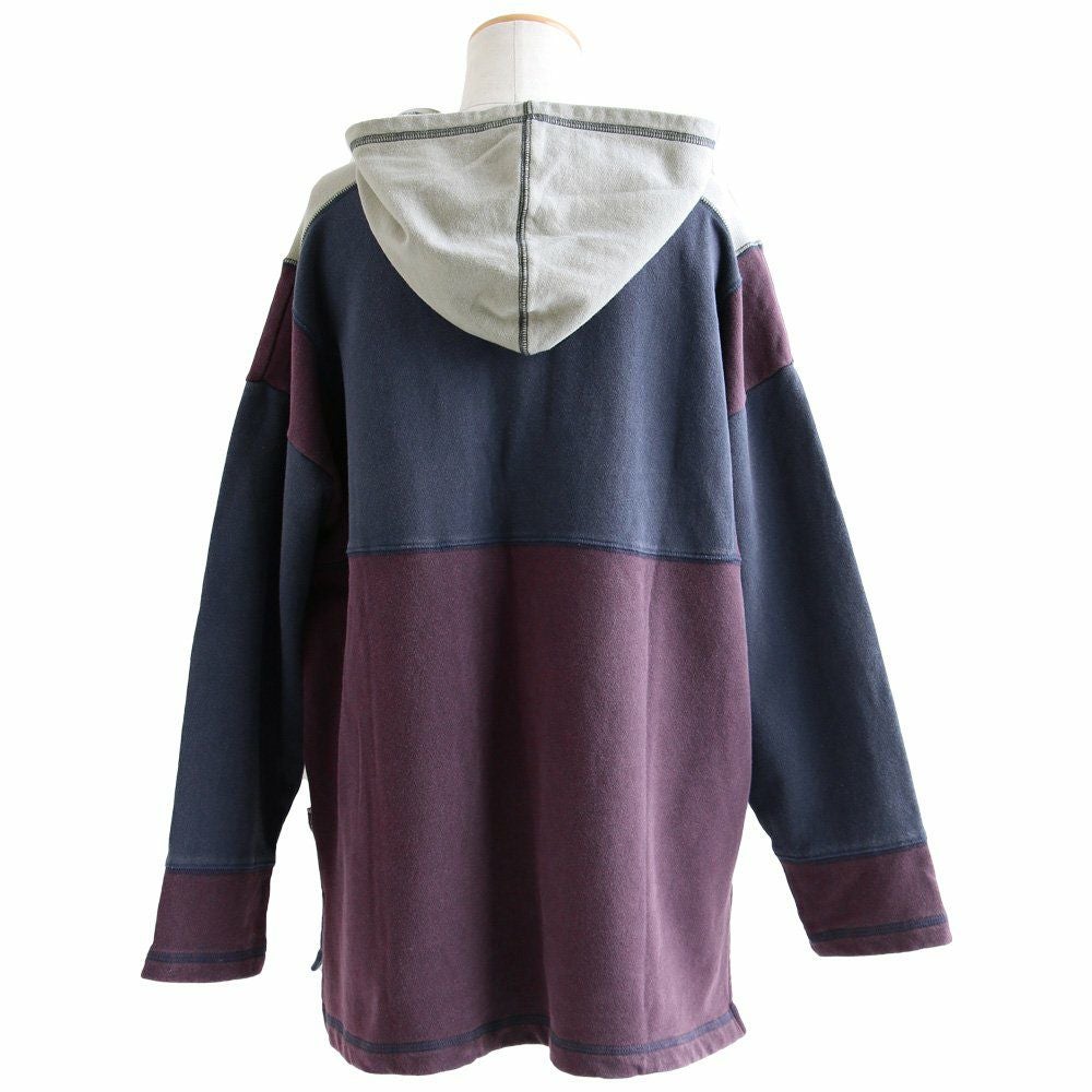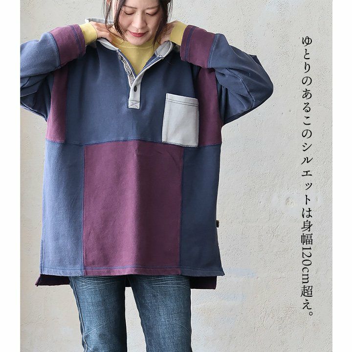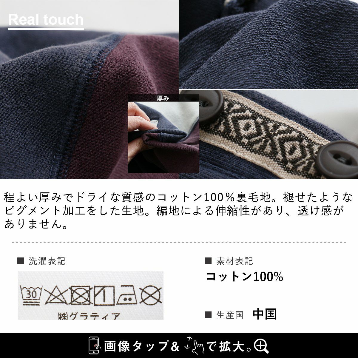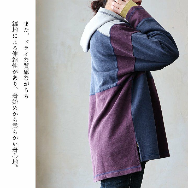 古着っぽい、遊び心。 パーカー 長袖 レディース ヘンリーネック 配色切り替え リメイク風 綿100 コットン 裏毛 伸縮性 ゆったり 大きいサイズ 体型カバー カジュアル メンズライク 秋 冬 パティ GENTIL ジャンティ