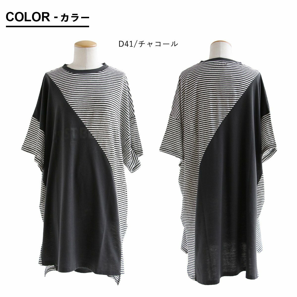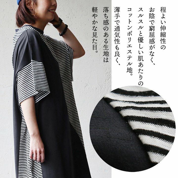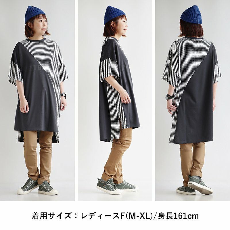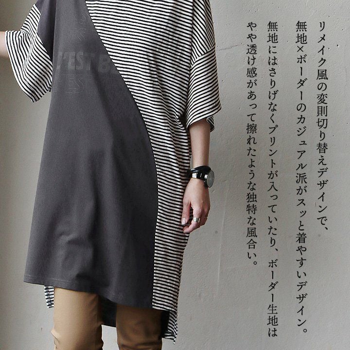 丁度良い「遊び」と「すっきりさ」。 チュニック 5分袖 レディース お尻隠れる 細見え すっきり 無地 ボーダー 切り替え リメイク風 伸縮性 薄手 涼しい 体型カバー 大きいサイズ カジュアル 夏 夏服 パティ GENTIL ジャンティ