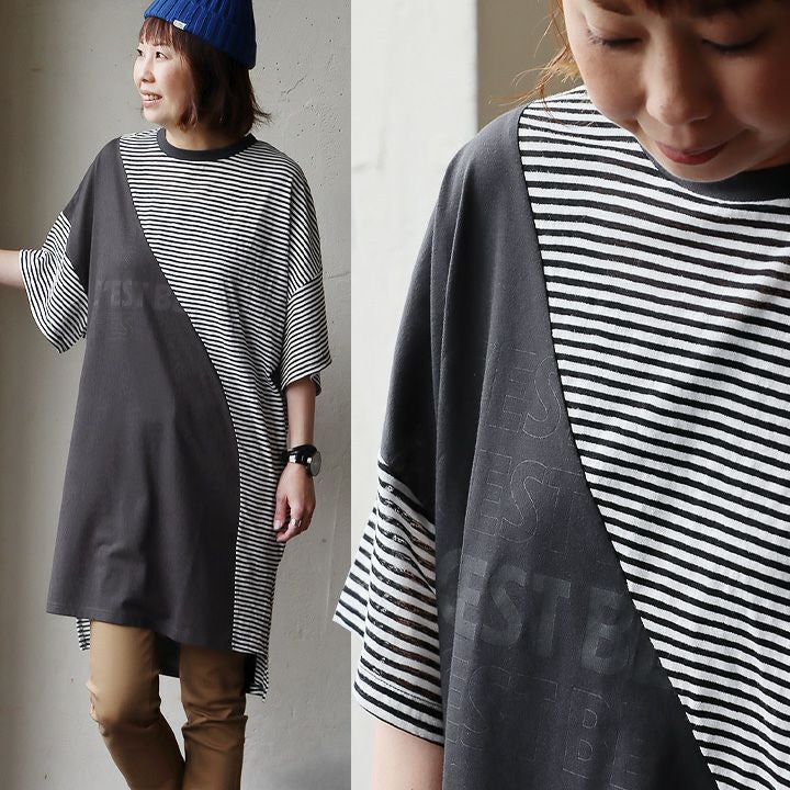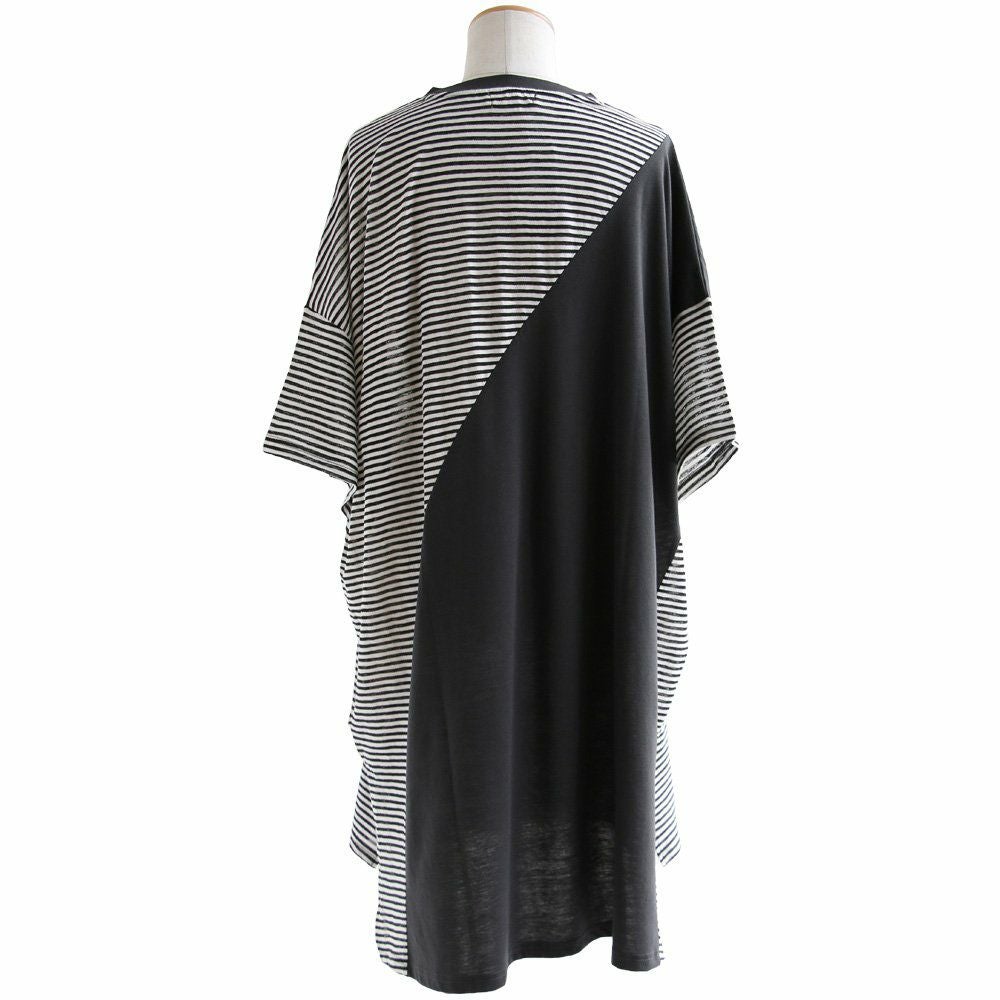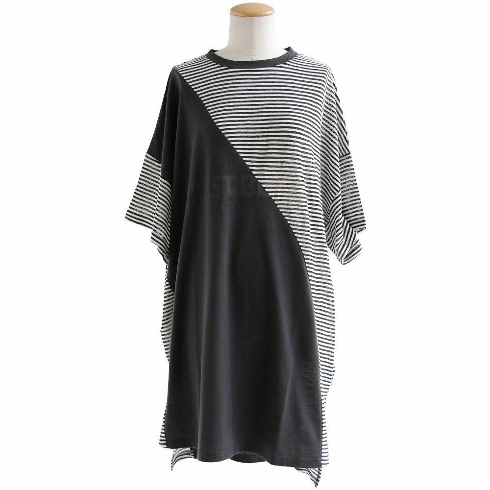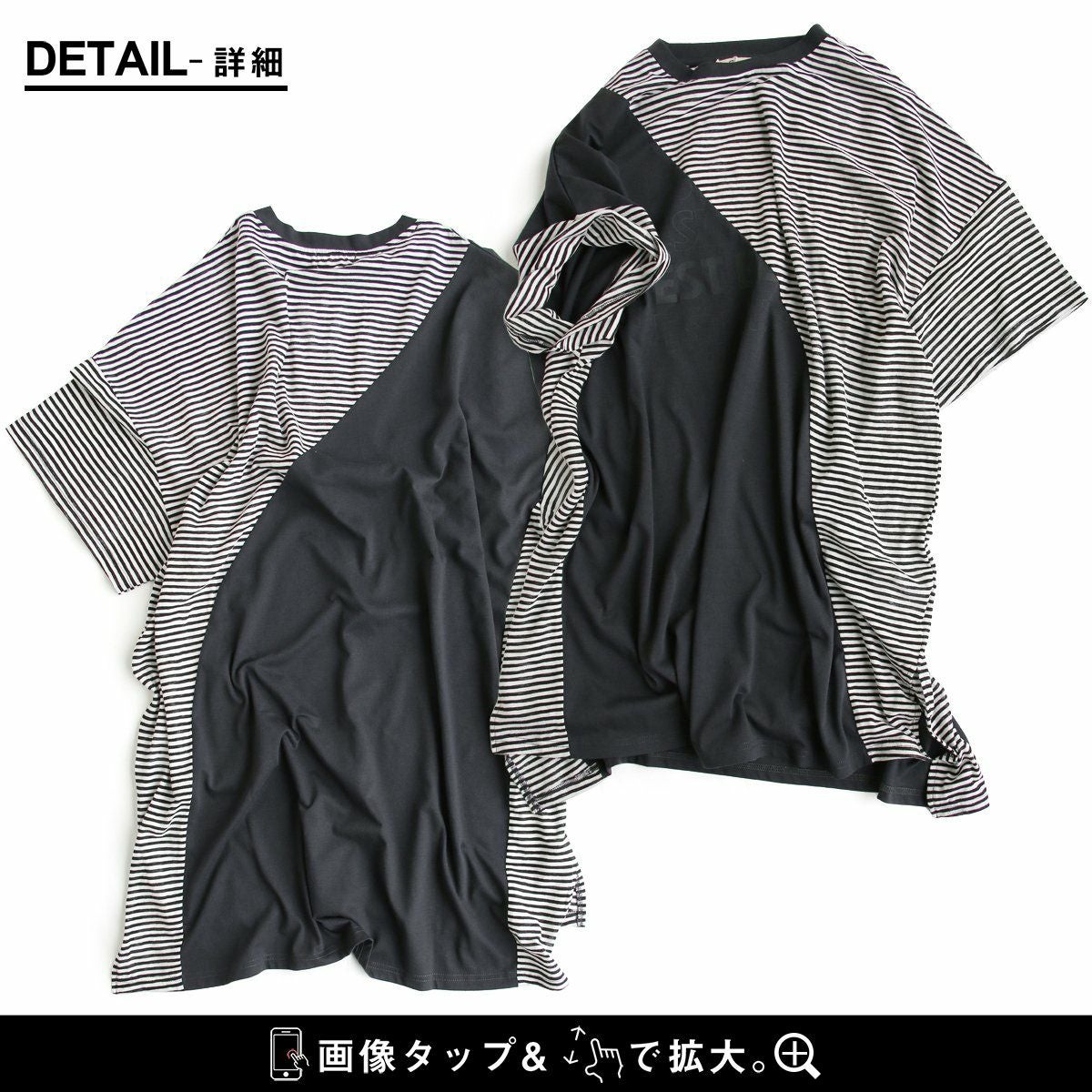 丁度良い「遊び」と「すっきりさ」。 チュニック 5分袖 レディース お尻隠れる 細見え すっきり 無地 ボーダー 切り替え リメイク風 伸縮性 薄手 涼しい 体型カバー 大きいサイズ カジュアル 夏 夏服 パティ GENTIL ジャンティ