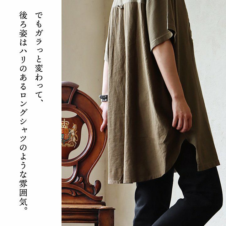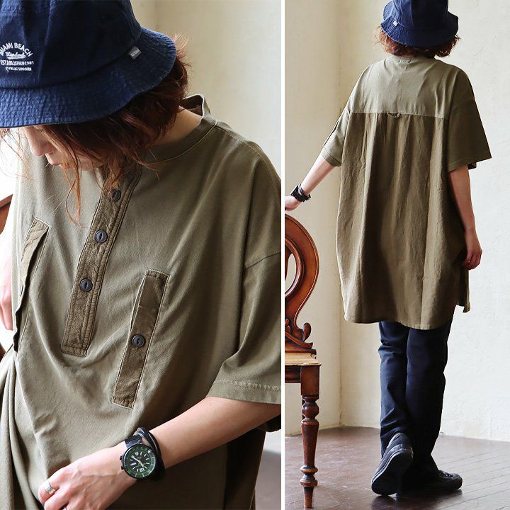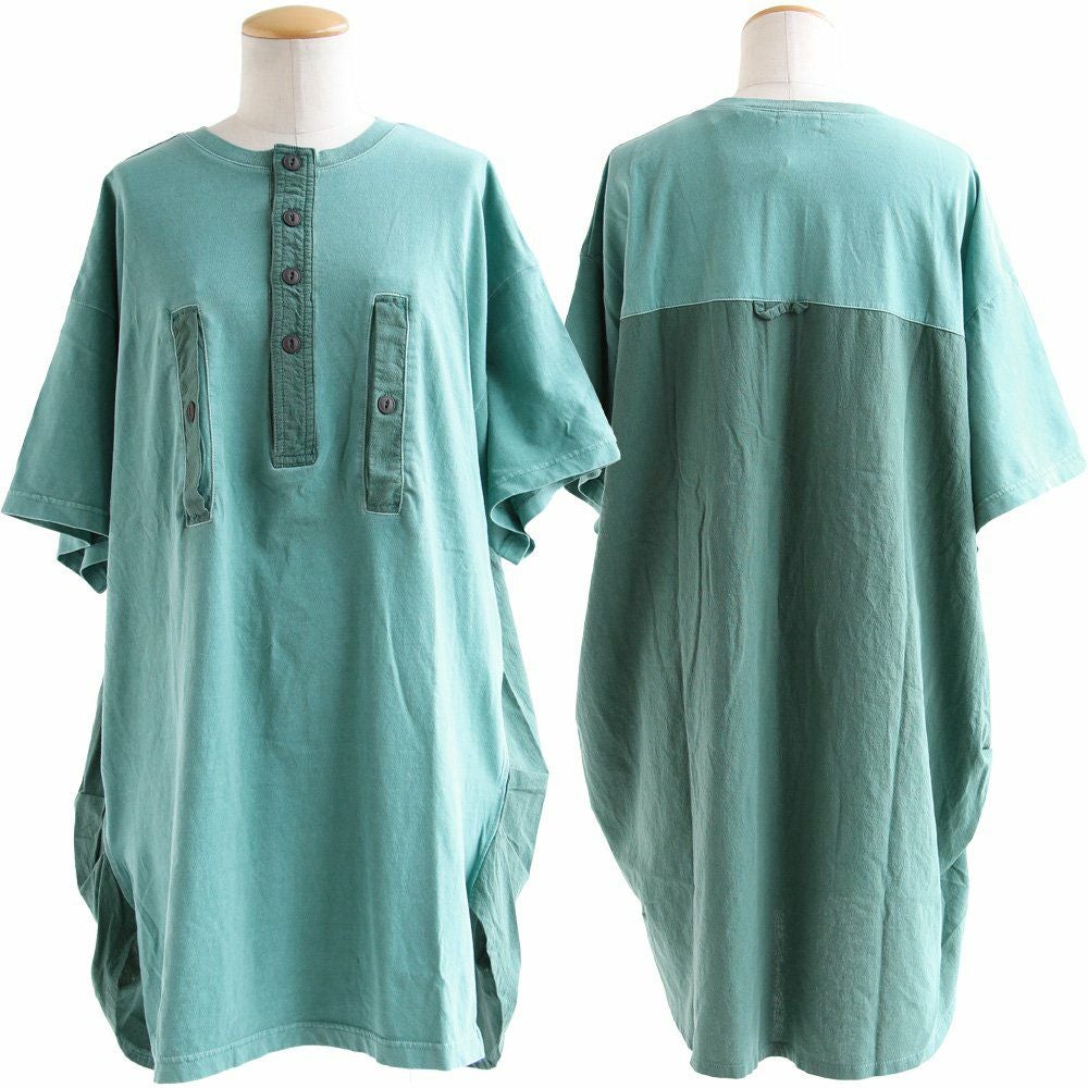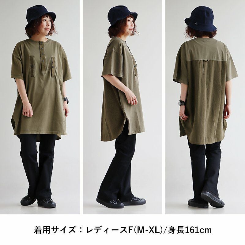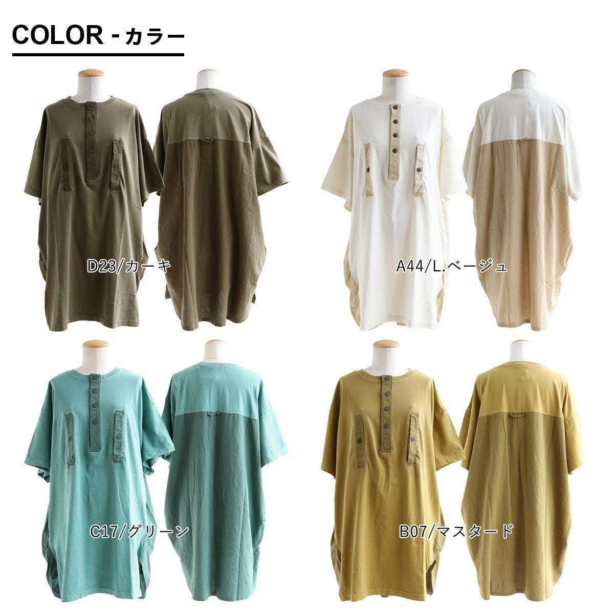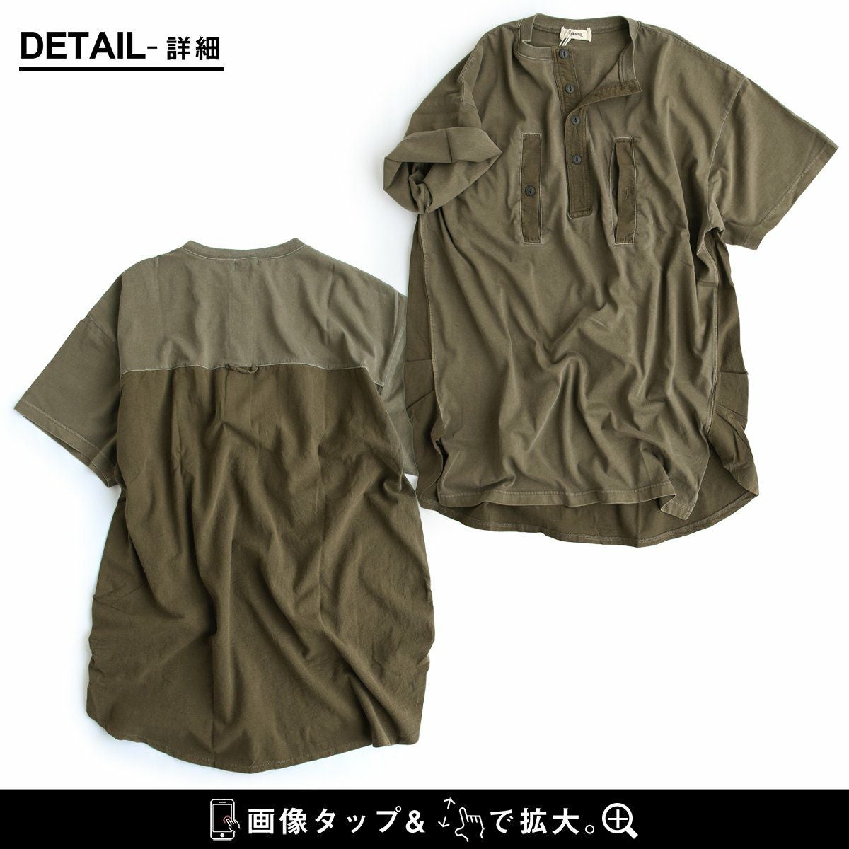 メンズっぽい見た目に、レディースならではの安心感を。 着痩せ tシャツ ワイド 5分袖 チュニック 夏 レディース ピグメント 異素材 綿100 コットン 布帛 お尻 二の腕 体型カバー 大きいサイズ カジュアル ヴィンテージ パティ GENTIL ジャンティ