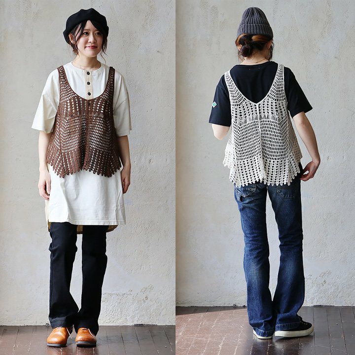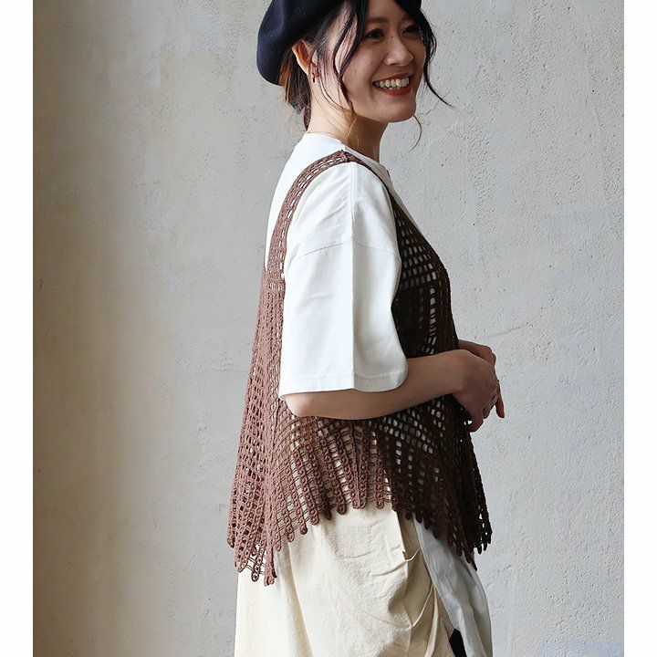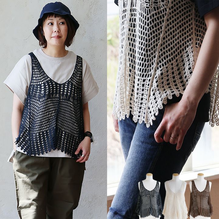 Tシャツに、物足りなさを感じたら。 【メール便50】 ベスト プルオーバー キャミソール レディース Vネック 透かし編み シアー ニット 重ね着 Tシャツ 大きいサイズ 秋 おしゃれ パティ GENTIL ジャンティ