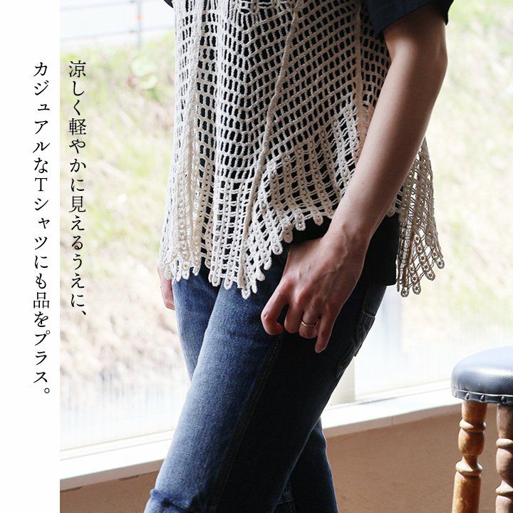 甘さを抑え、都会な雰囲気。 カーディガン 長袖 レディース Vネック 透かし編み レース かぎ針風 総柄 透け感 重ね着 涼しい 軽い ゆったり 大きいサイズ カジュアル パティ GENTIL ジャンティ