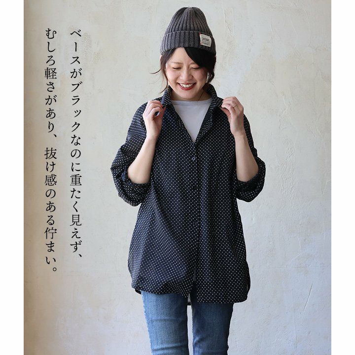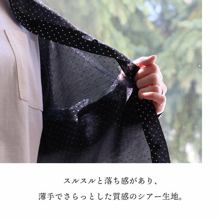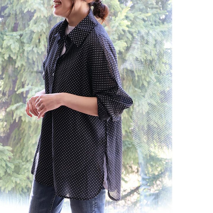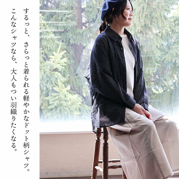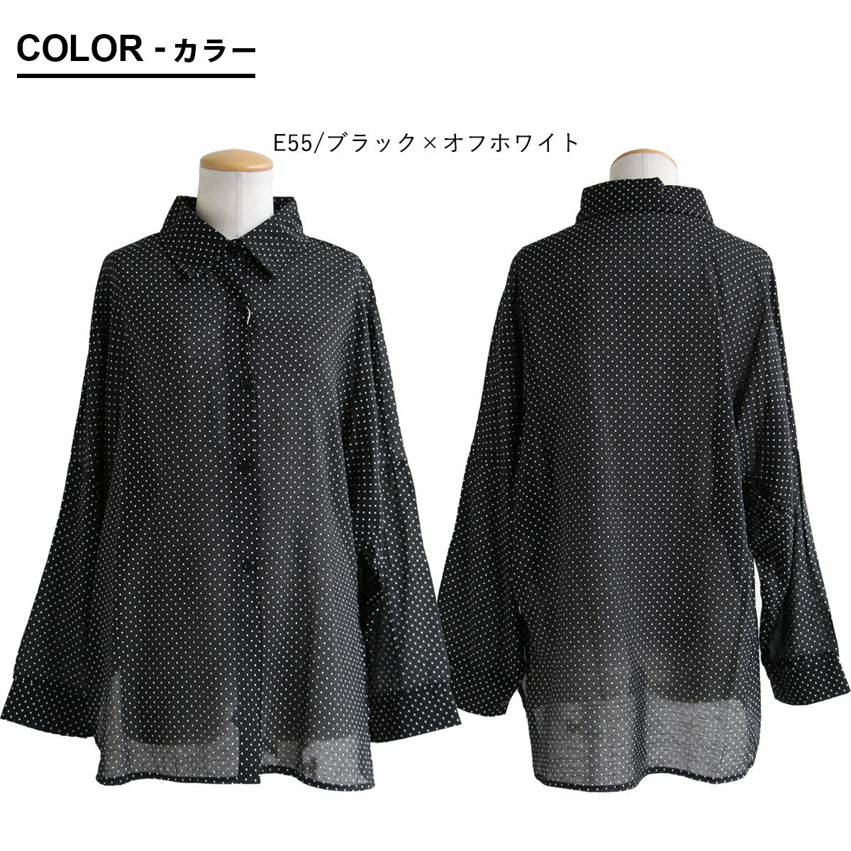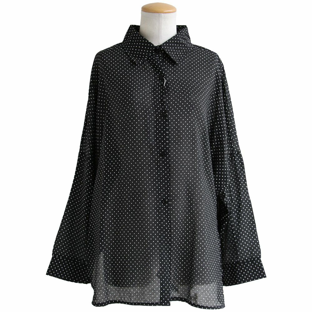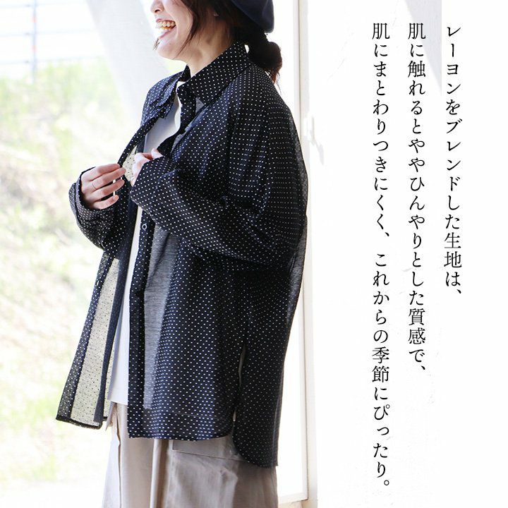 「するっと」「さらっと」、軽やかな控えめドット。 【メール便50】 シャツ レディース 長袖 レギュラーカラー シアー ドット柄 薄手 レーヨン ポリエステル 涼しい 軽い ゆったり 大きいサイズ 体型カバー カジュアル 夏 パティ GENTIL ジャンティ