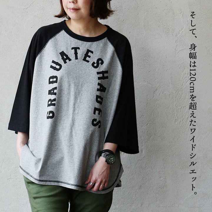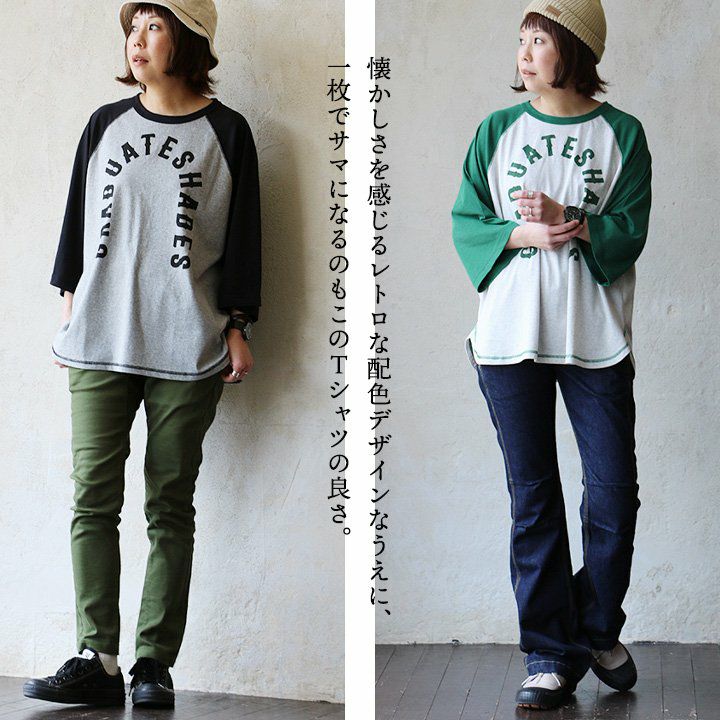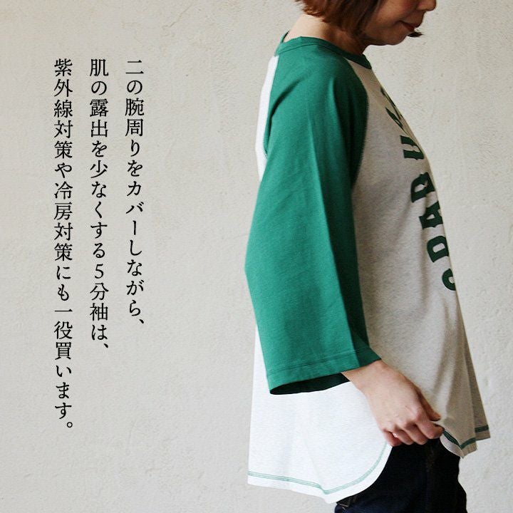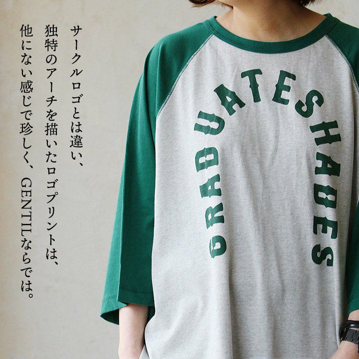 レトロなデザインに隠された、快適な着心地。 Tシャツ 5分袖 ラグランT レディース クルーネック 配色 ロゴプリント コットン ポリエステル 伸縮性 通気性 薄手 涼しい ゆったり 大きいサイズ 体型カバー カジュアル 夏 パティ GENTIL ジャンティ