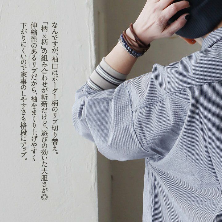 遊びと着やすさ、両方。 シャツ 長袖 レディース 袖リブ ギンガムチェック ボーダー 配色切り替え 綿100 コットン 軽い 着痩せ 大きいサイズ 体型カバー カジュアル PATY パティ GENTIL ジャンティ