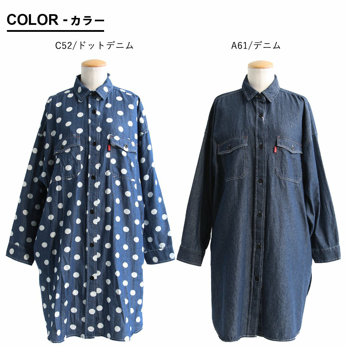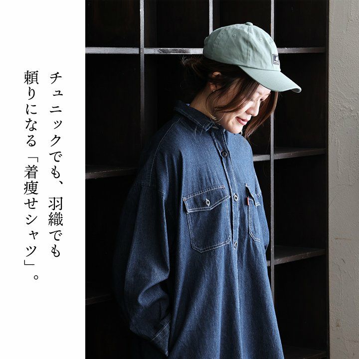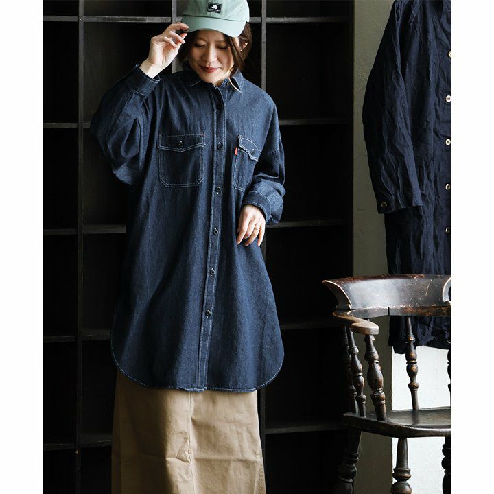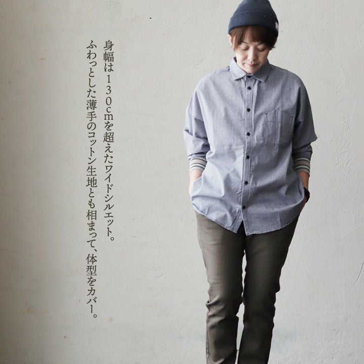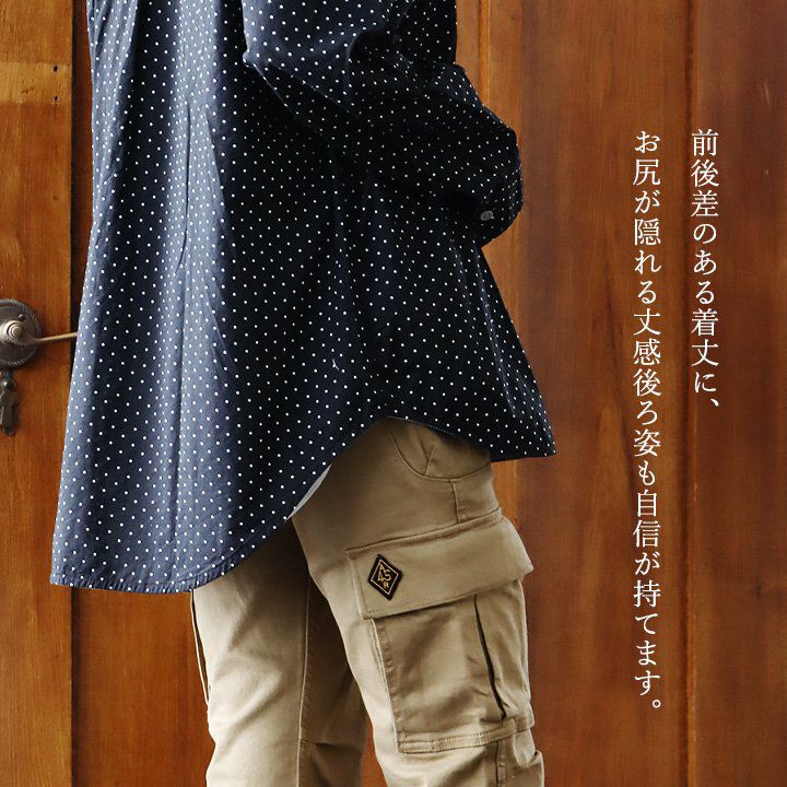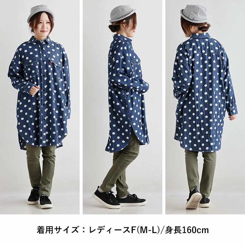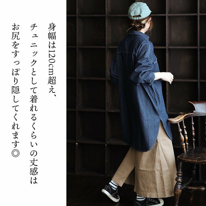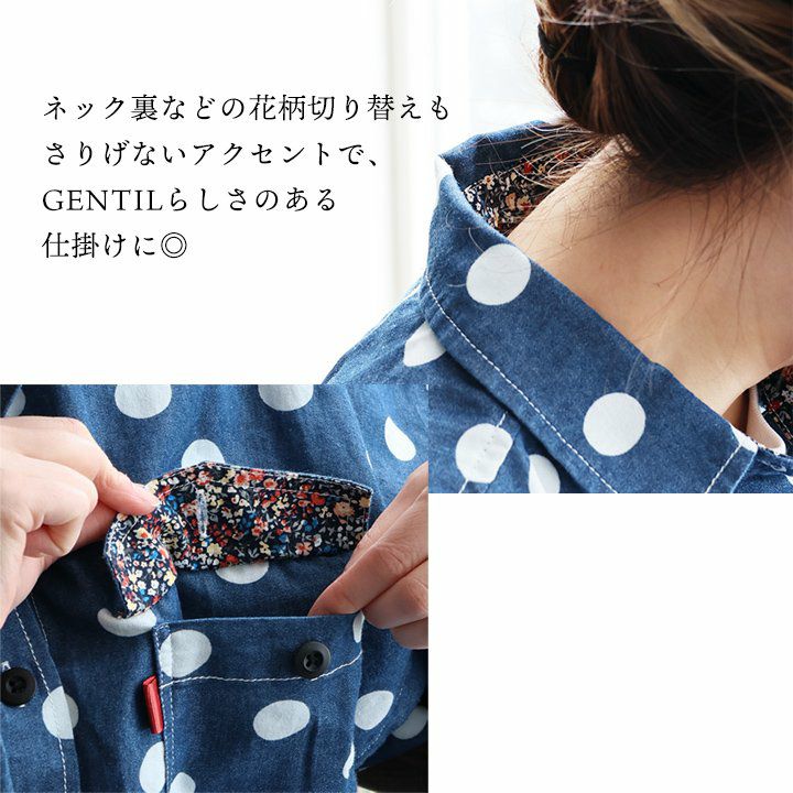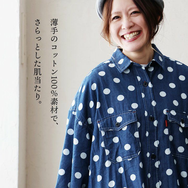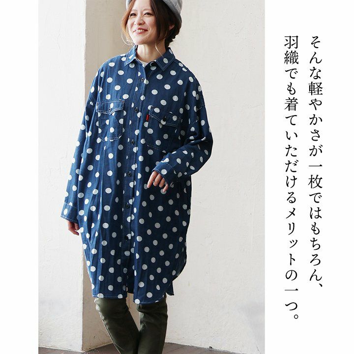 チュニックでも、羽織でも。頼りになる「着痩せ感シャツ」。 シャツ ロングシャツ CPOシャツ レディース お尻隠れる 着痩せ デニム コットン100% 綿 デニム ドット柄 薄手 すっきり 大きいサイズ 体型カバー カジュアル PATY パティ GENTIL ジャンティ